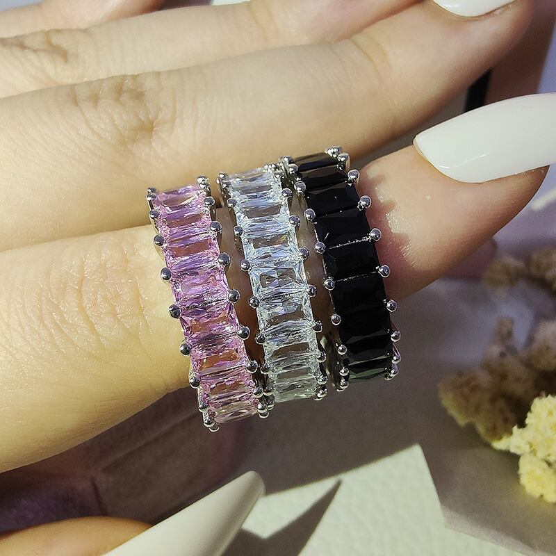 送料無料 ピンクブラックシルバーカラーの美的結婚指輪エタニティリング女性レディギフトフィンガーロットジュエリーR5950 銀 アクセサリー AE00116699078782335