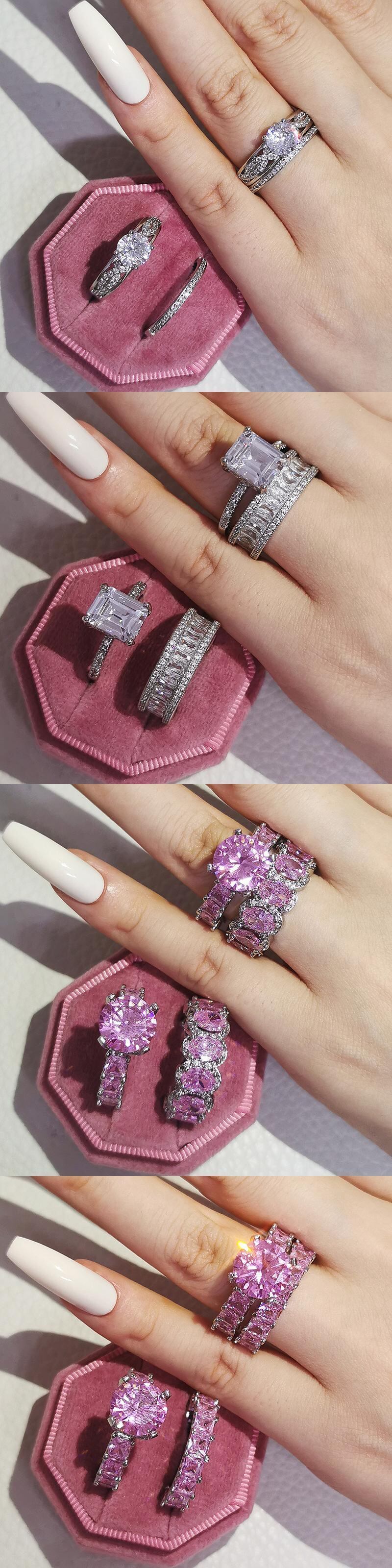 送料無料 2022年高級ヴィンテージシルバーカラー結婚指輪セットブライダル女性婚約ギフトジュエリーR4869 リング 銀 ビンテージ アクセサリー AE00116614230157179
