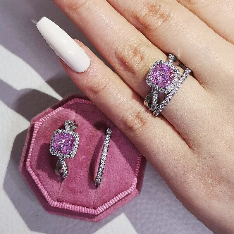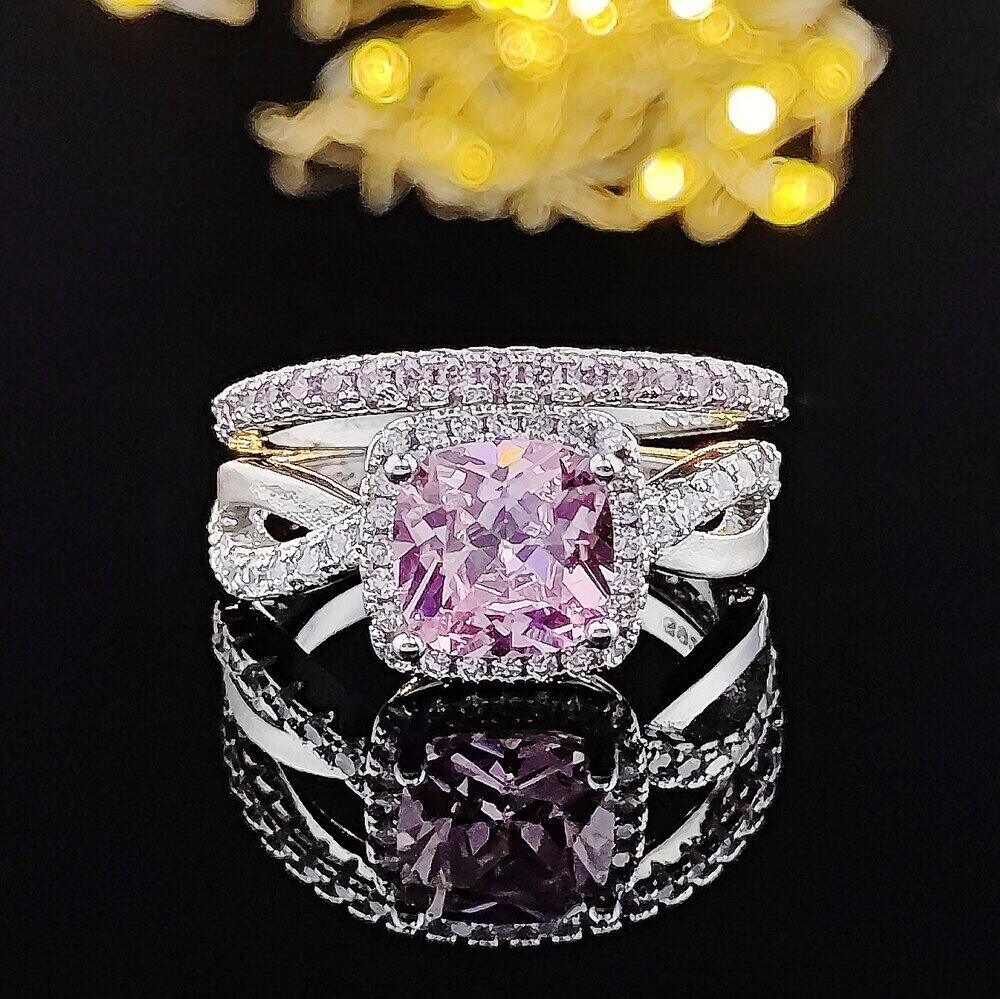 送料無料 2022年新しいシルバーカラーの花嫁結婚指輪セット女性の花嫁婚約ジュエリーバンドエタニティギフトR6993-ピンク リング 銀 アクセサリー AE00116634833534729
