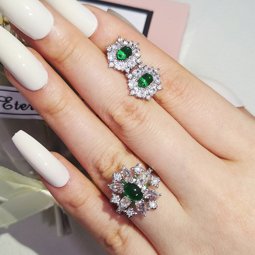 送料無料 2ピースパックシルバーカラー花嫁ジュエリーセットハロー婚約指輪ラウンドスタッドピアスウェディングJ7329 イヤリング リング 銀 アクセサリー AE00116683535704809