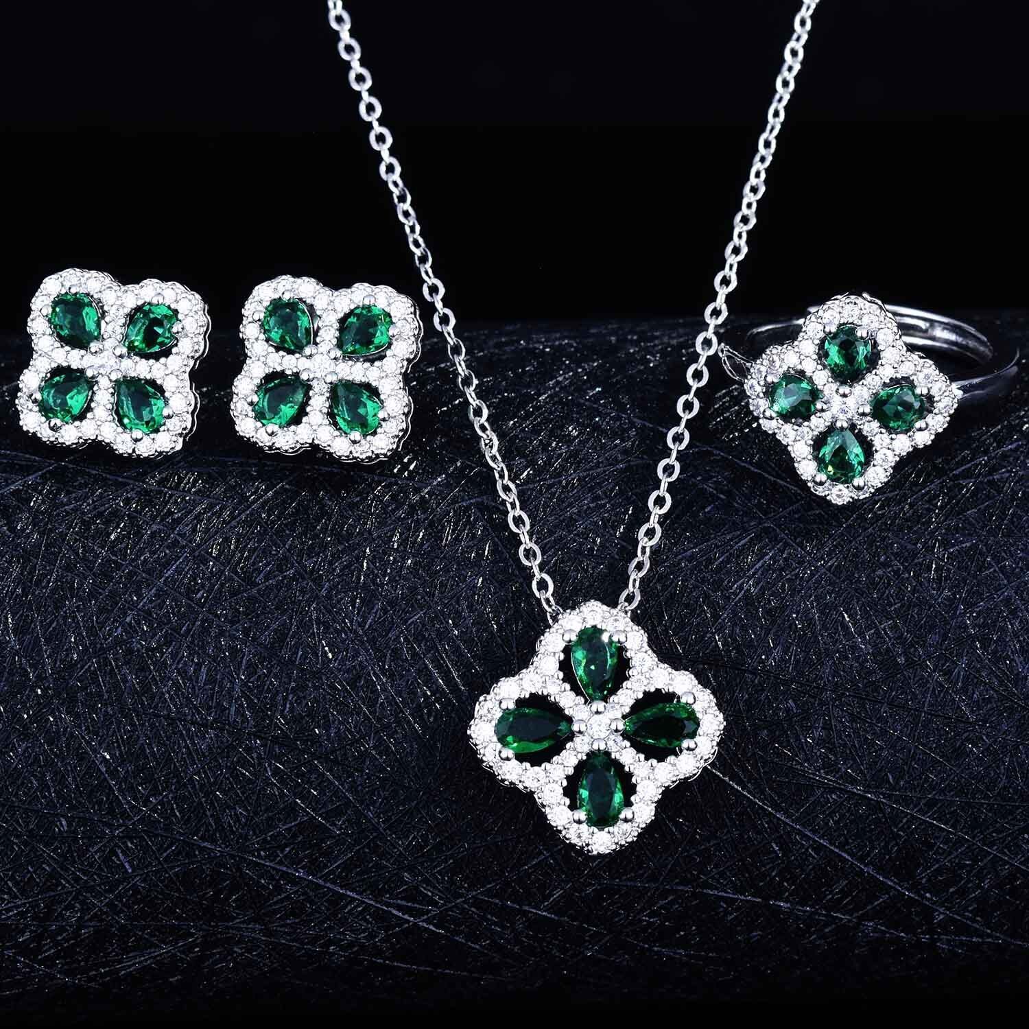 送料無料 2022年高級グリーンカラー4枚葉Grジュエリーセット女性結婚記念日ギフトジュエリーJ6885 アクセサリー AE00116627621075240