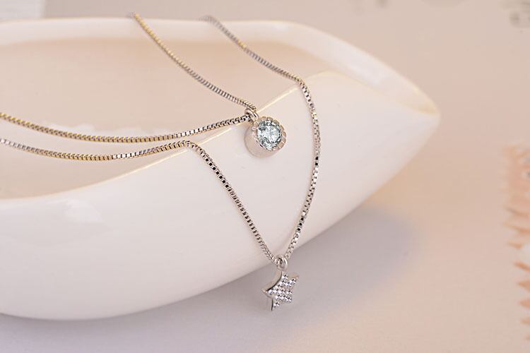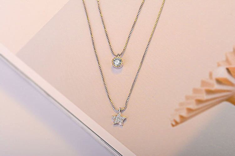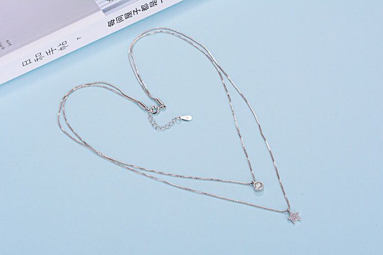 送料無料 2pcs2022トレンディなハロースターネックレス首にシルバーカラー女性のパーティーギフトジュエリーX6406 レース 銀 アクセサリー AE00116624792865610