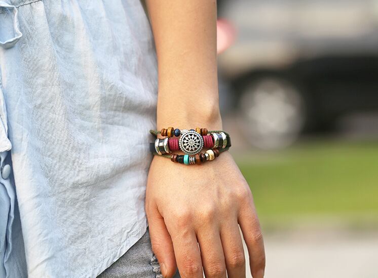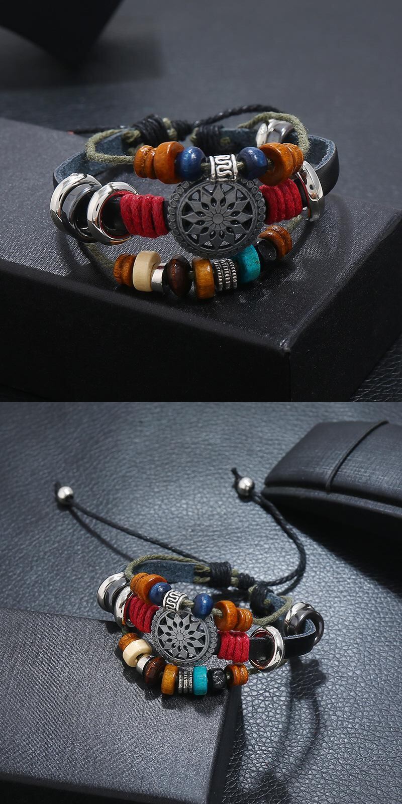 送料無料 ファッションブラックビーズブレスレットメンズホロートライアングルレザーブレスレット&バングルマルチレイヤーワイドラップジュエリーS6672 アクセサリー AE00116674970008390