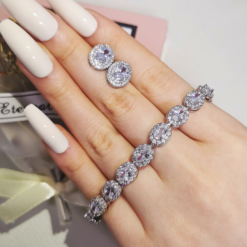 送料無料 2ピースパックシルバーカラー花嫁ジュエリーセットハロー婚約指輪ラウンドスタッドピアスウェディングギフトJ7260 イヤリング リング 銀 アクセサリー AE00116623462915500