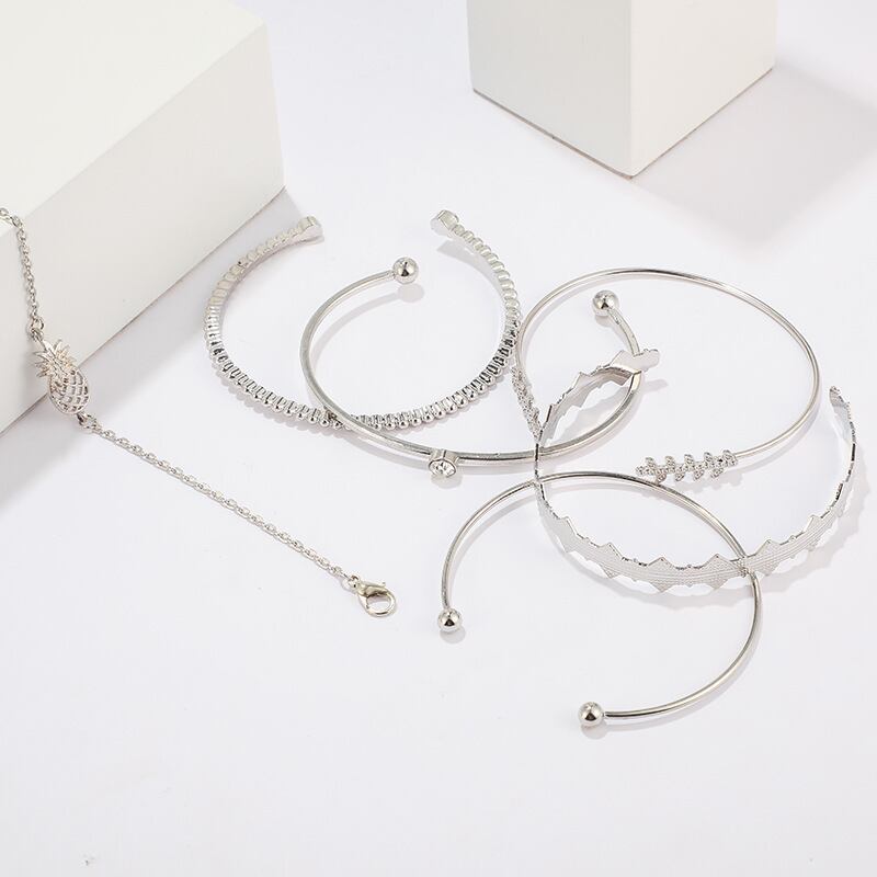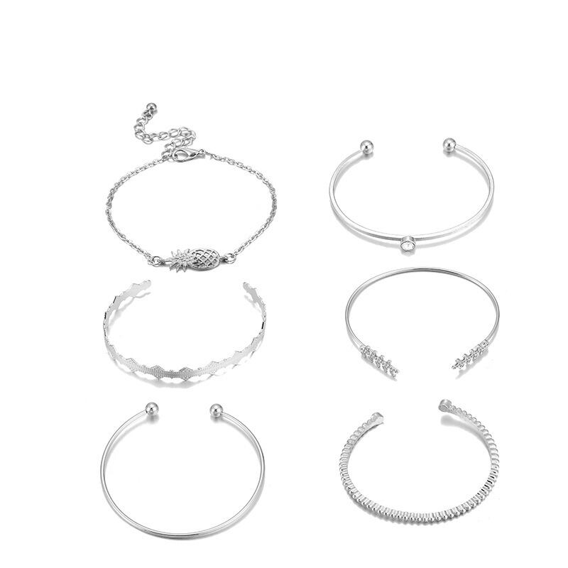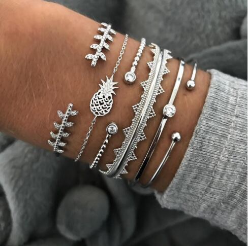 送料無料 幾何学的な葉は空のパイナップルです6PCS多層チャームブレスレット女性バレンタインデーギフトジュエリーバルク販売S5745 アクセサリー AE00116610273370738