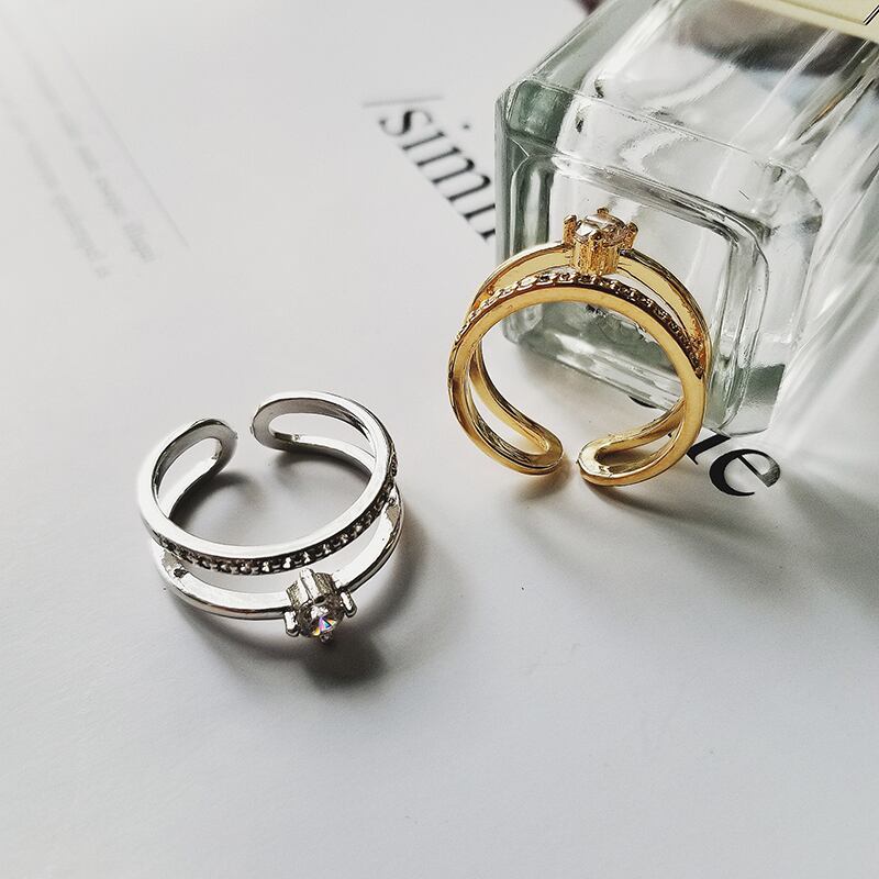 送料無料 シルバー/ゴールドカラーAAAキュービックジルコン調節可能なオープンファッションプロミスリング女性はパーティーを愛する女性のアネルフィンガージュエリーR4679 アジャスタブル 指輪 銀 アクセサリー AE00116638944530177