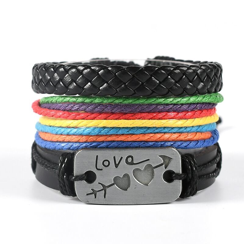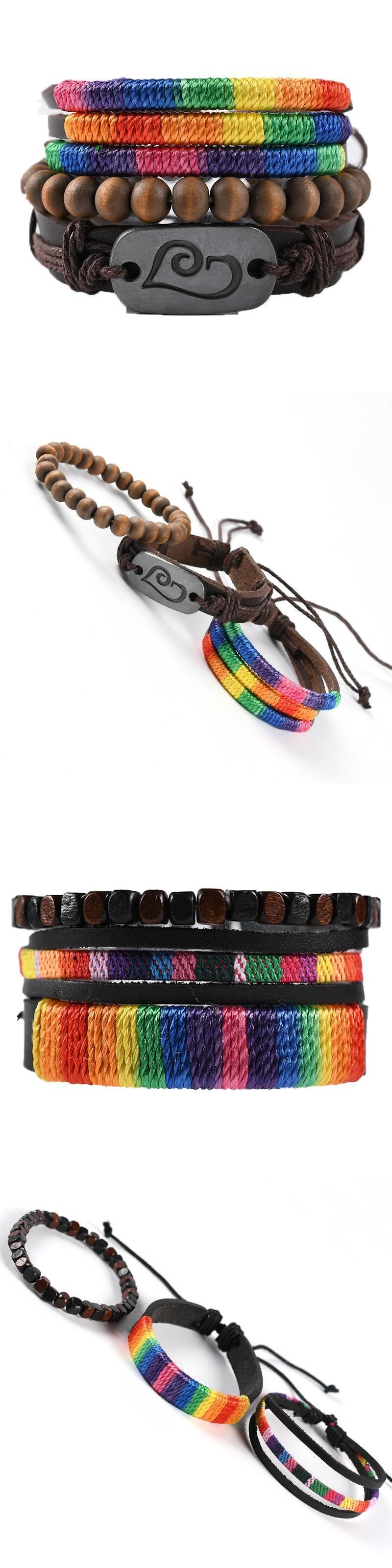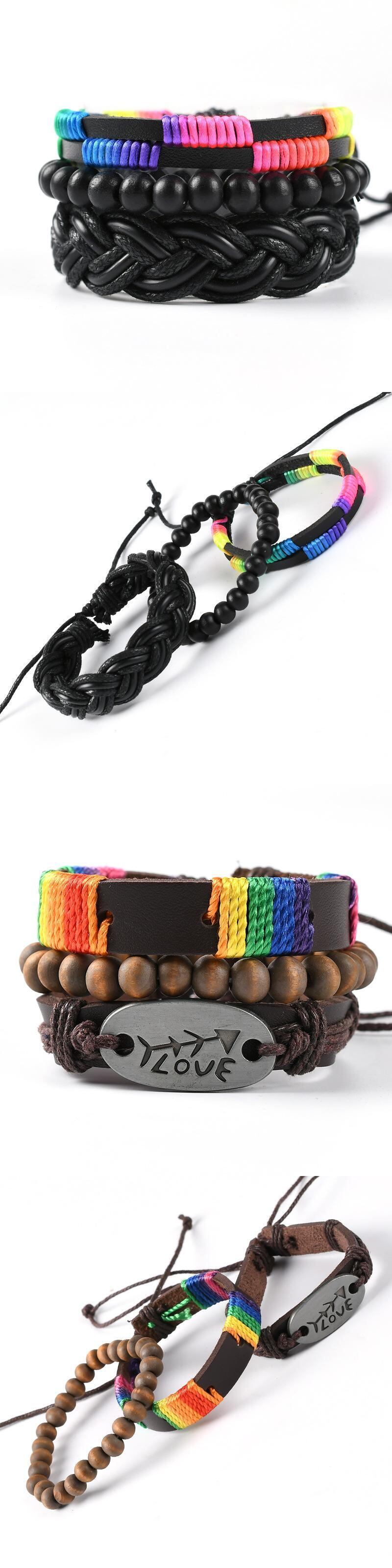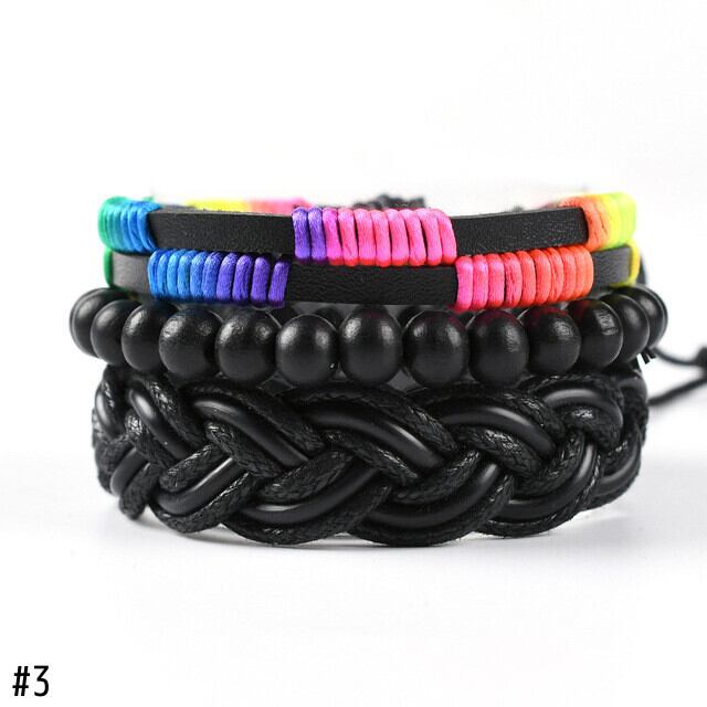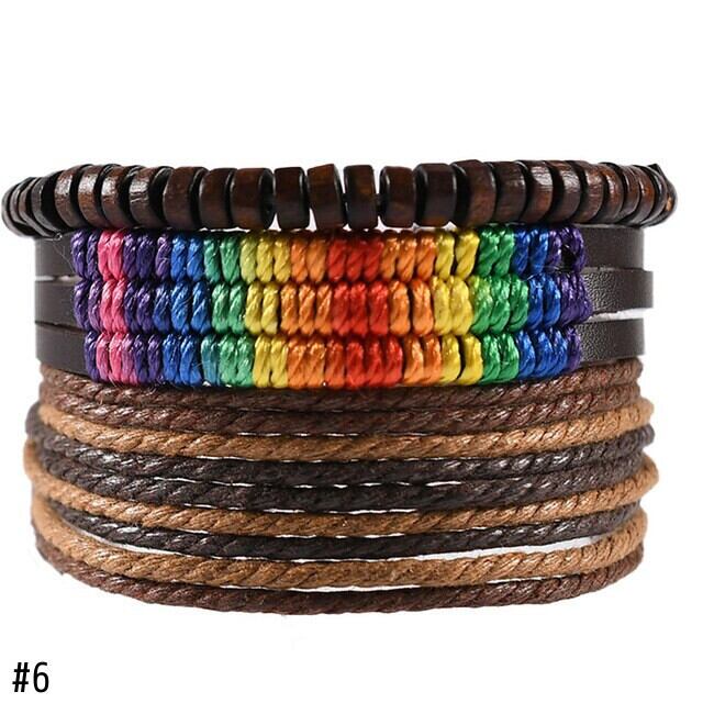 送料無料 ボヘミアンレインボーブラックブレスレットメンズホロートライアングルレザーブレスレット&バングルマルチレイヤーワイドラップジュエリーS6675 アクセサリー AE00116626761177055