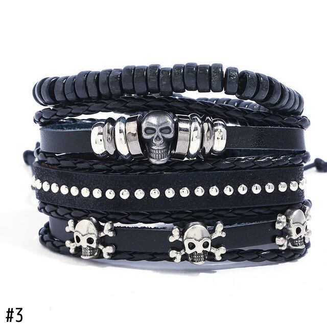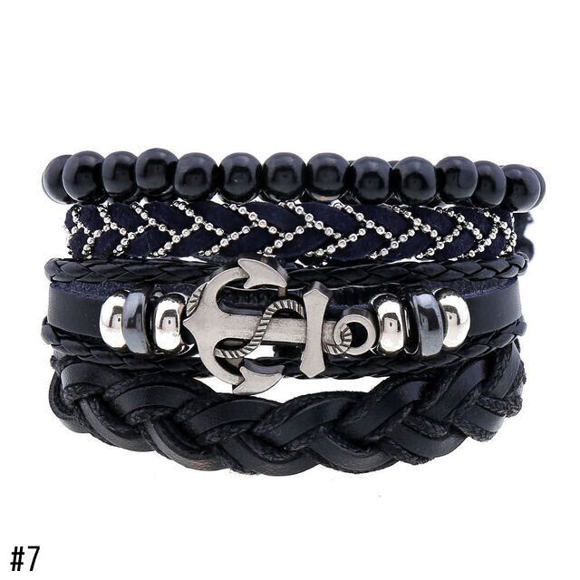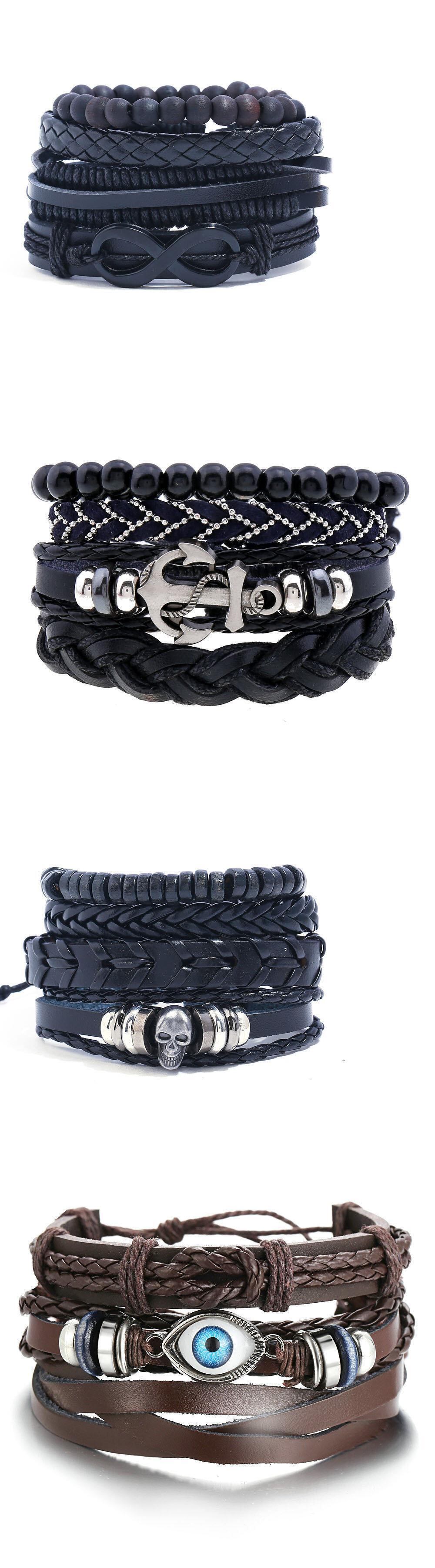送料無料 3 /4Pcs/セット編み込みラップレザーブレスレットメンズヴィンテージライフツリーラダーチャームウッドビーズエスニックトライバルリストバンドS6679 ビンテージ アクセサリー AE00116651676535198