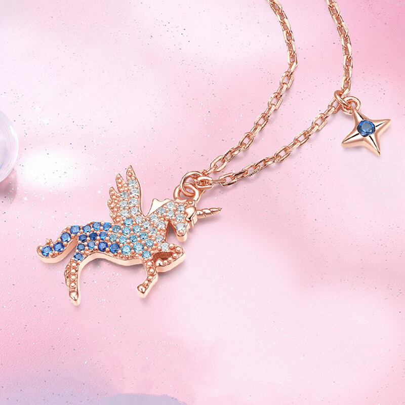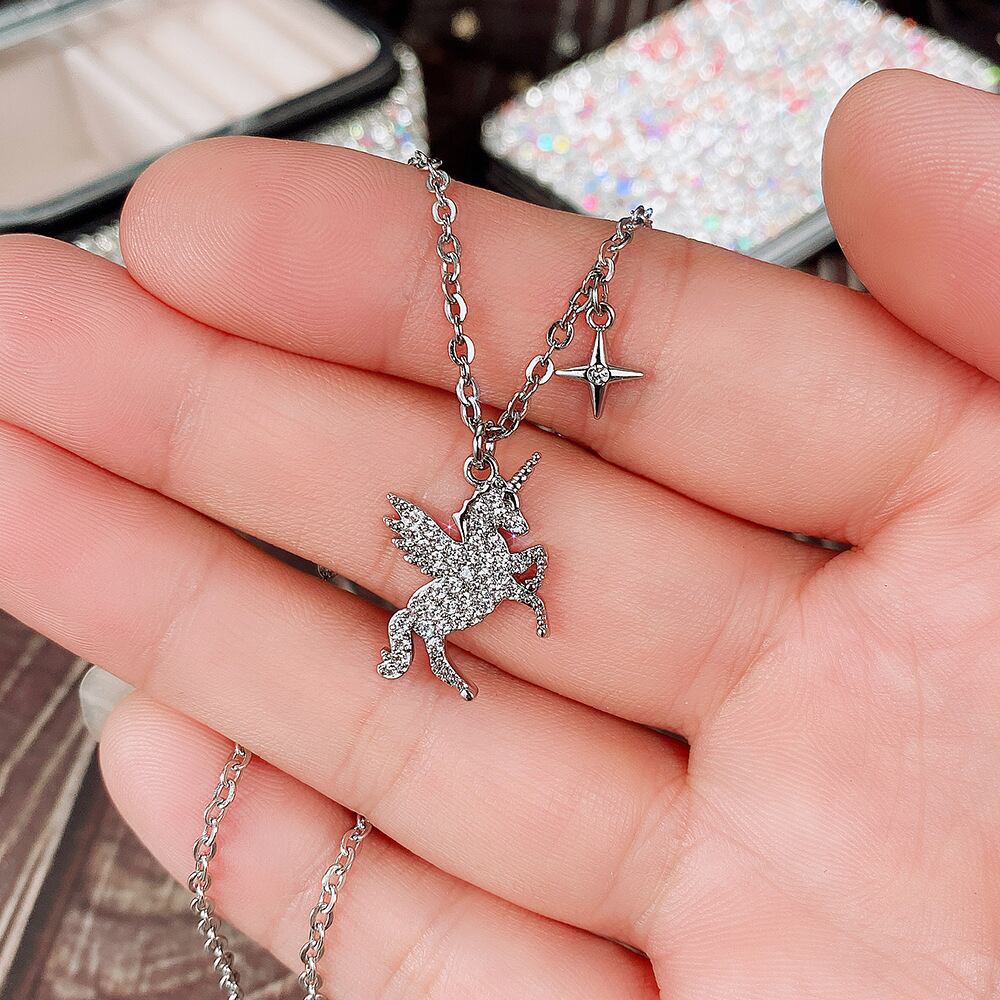 送料無料 2022年トレンディなゴールドシルバーカラーユニコーンネックレス女性記念日ギフトジュエリーX7484 レース 銀 アクセサリー AE00116669278995746