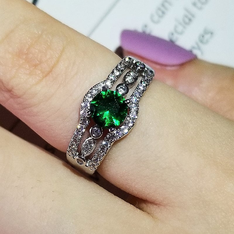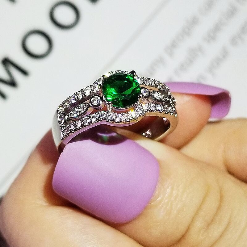 送料無料 2022レトログリーンカラーラウンドシルバーカラーデザイナー婚約指輪女性レディアニバーサリーギフトジュエリーバルクセルR5816 リング 銀 アクセサリー AE00116613623131978