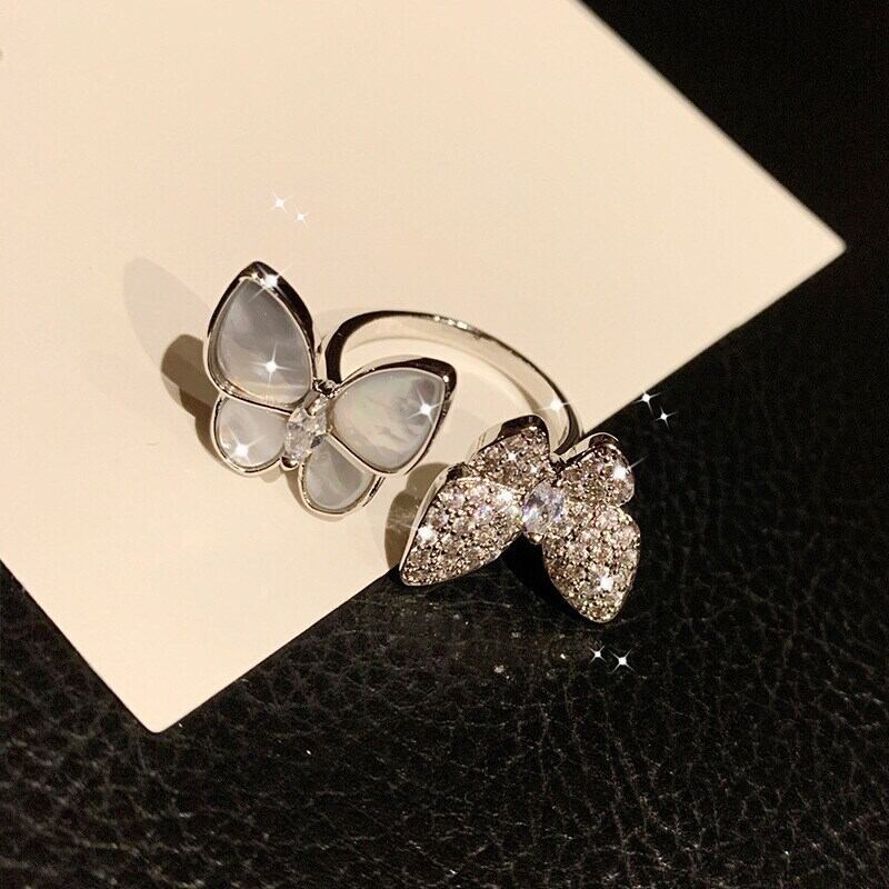 送料無料 2022トレンディなローズゴールドシルバーカラーバタフライリングオープンウィメンズパーティーギフトジュエリーR7147 指輪 銀 アクセサリー AE0011662026292312