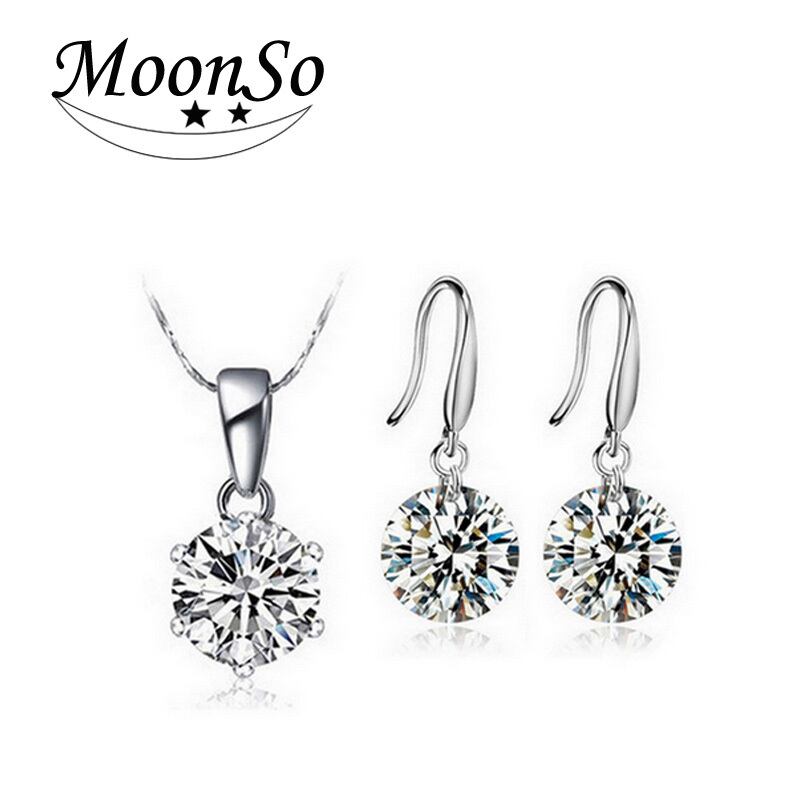 送料無料 2ピースパックトレンディなラウンドクリスタルシルバーカラー花嫁ジュエリーセットウェディングペンダントレディースジュエリーのエレガントなレディースセットJ878 銀 アクセサリー AE00116670289099690