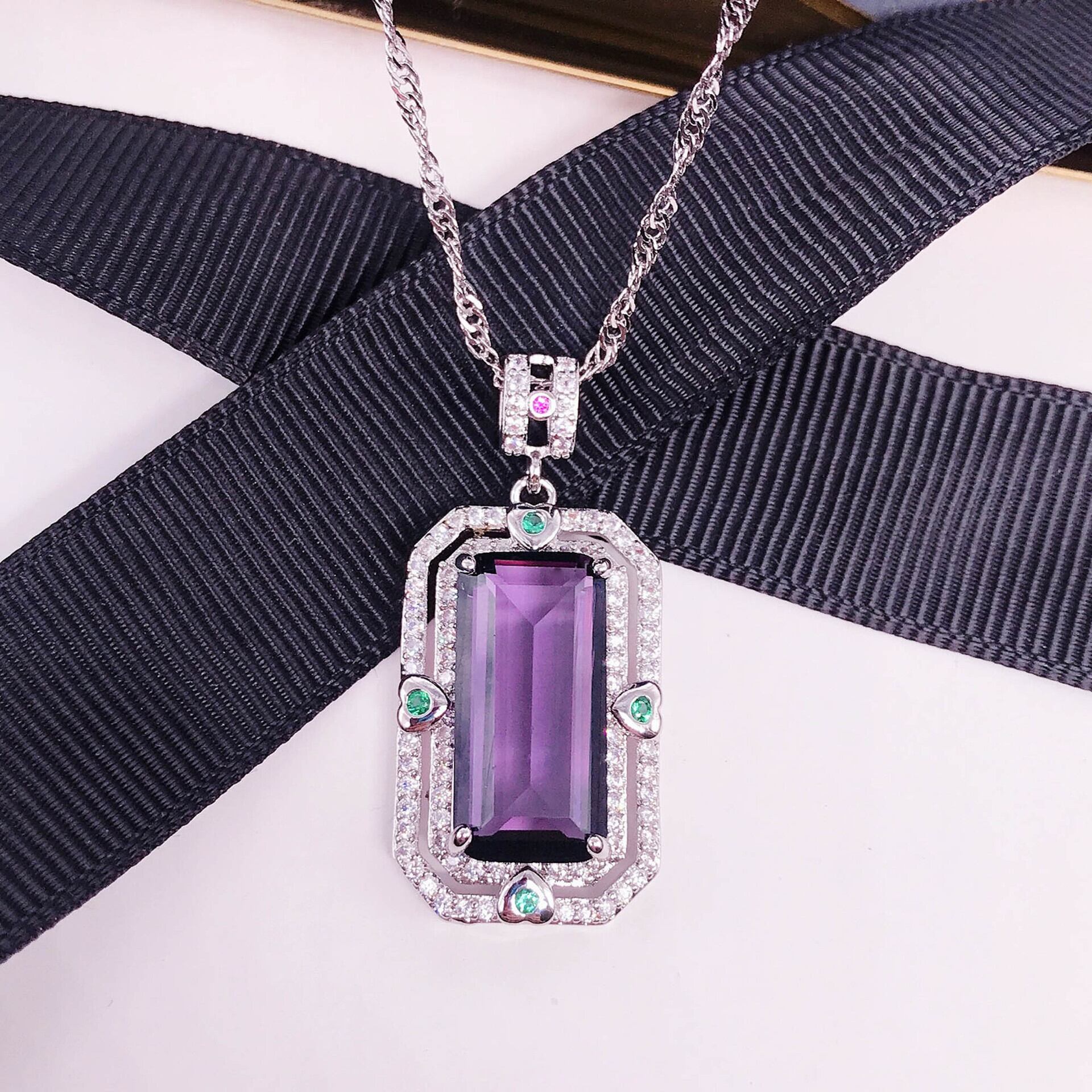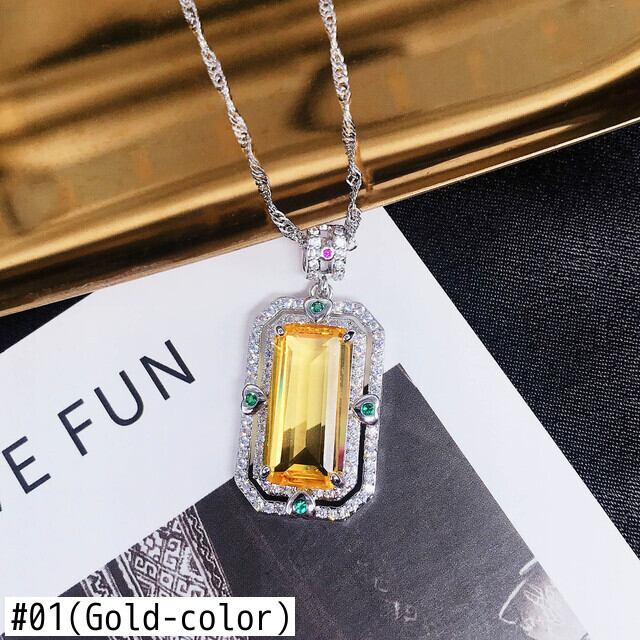 送料無料 2022年高級イエローパープルカラー長方形ネックレス女性アニバーサリーギフトジュエリーX6900 レース アクセサリー AE00116664704168857