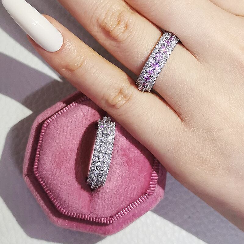送料無料 セットあたり2個ラグジュアリーパックピンクシルバーカラーの美的結婚指輪エタニティリング女性ギフトフィンガーロットジュエリーR4572 銀 アクセサリー AE00116664456465154