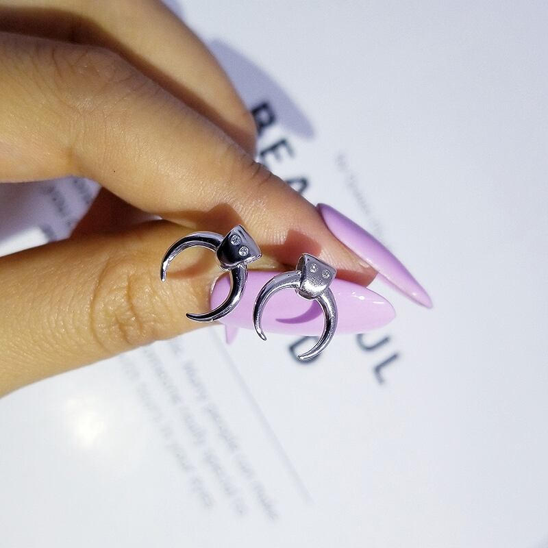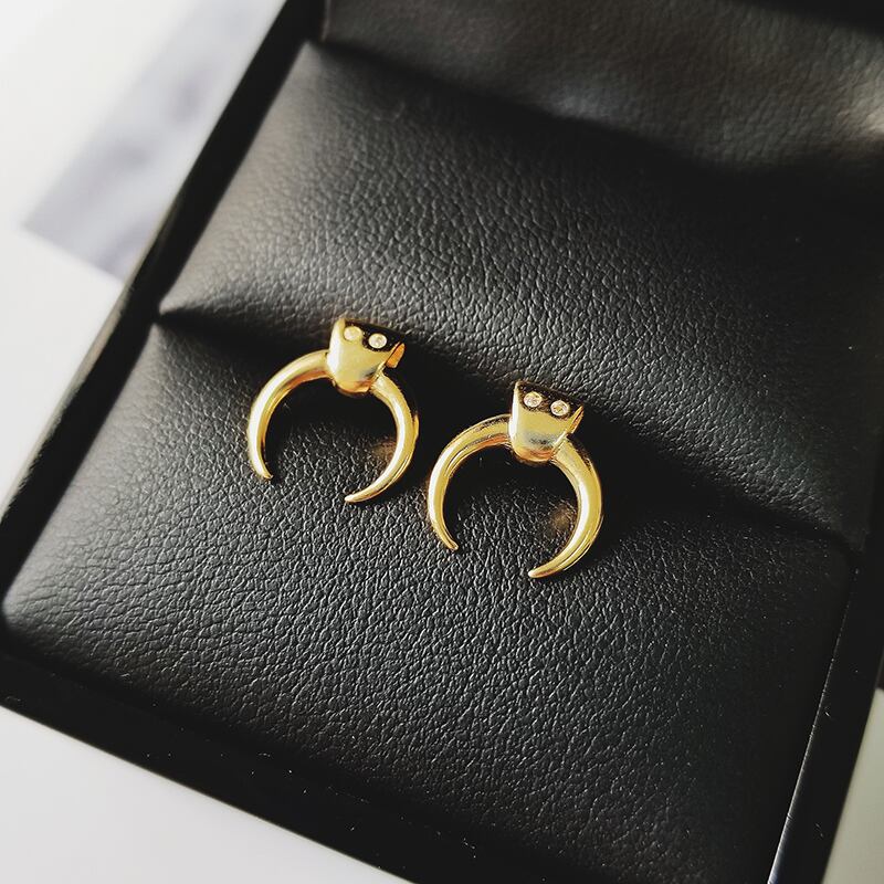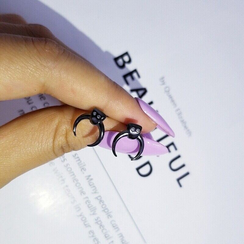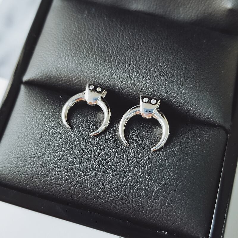 送料無料 ファッションローズゴールドシルバーカラーブラックジルコンクリスタルオックスホーンカウスタッドピアス女性ウェディングパーティートレンディジュエリーラブE4682 イヤリング 銀 アクセサリー AE00116687869051873