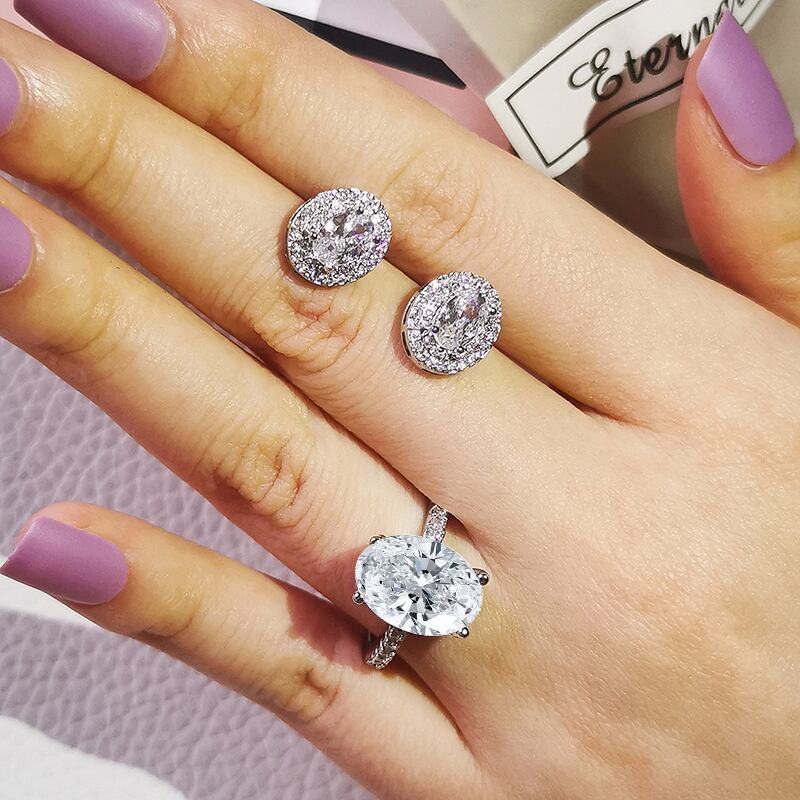送料無料 2ピースパックシルバーカラー花嫁ジュエリーセットハロー婚約指輪ラウンドスタッドピアスウェディングギフトJ5566 イヤリング リング 銀 アクセサリー AE00116628182519879