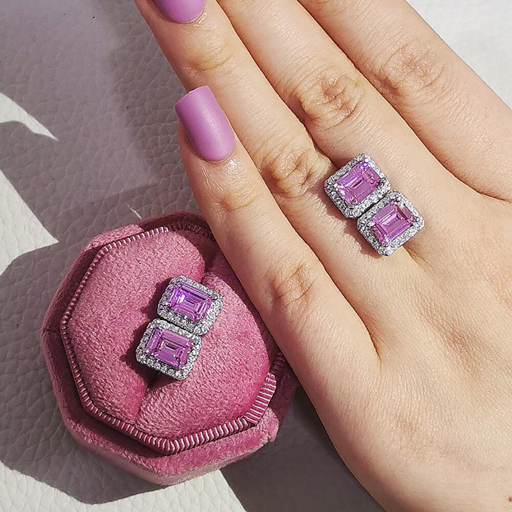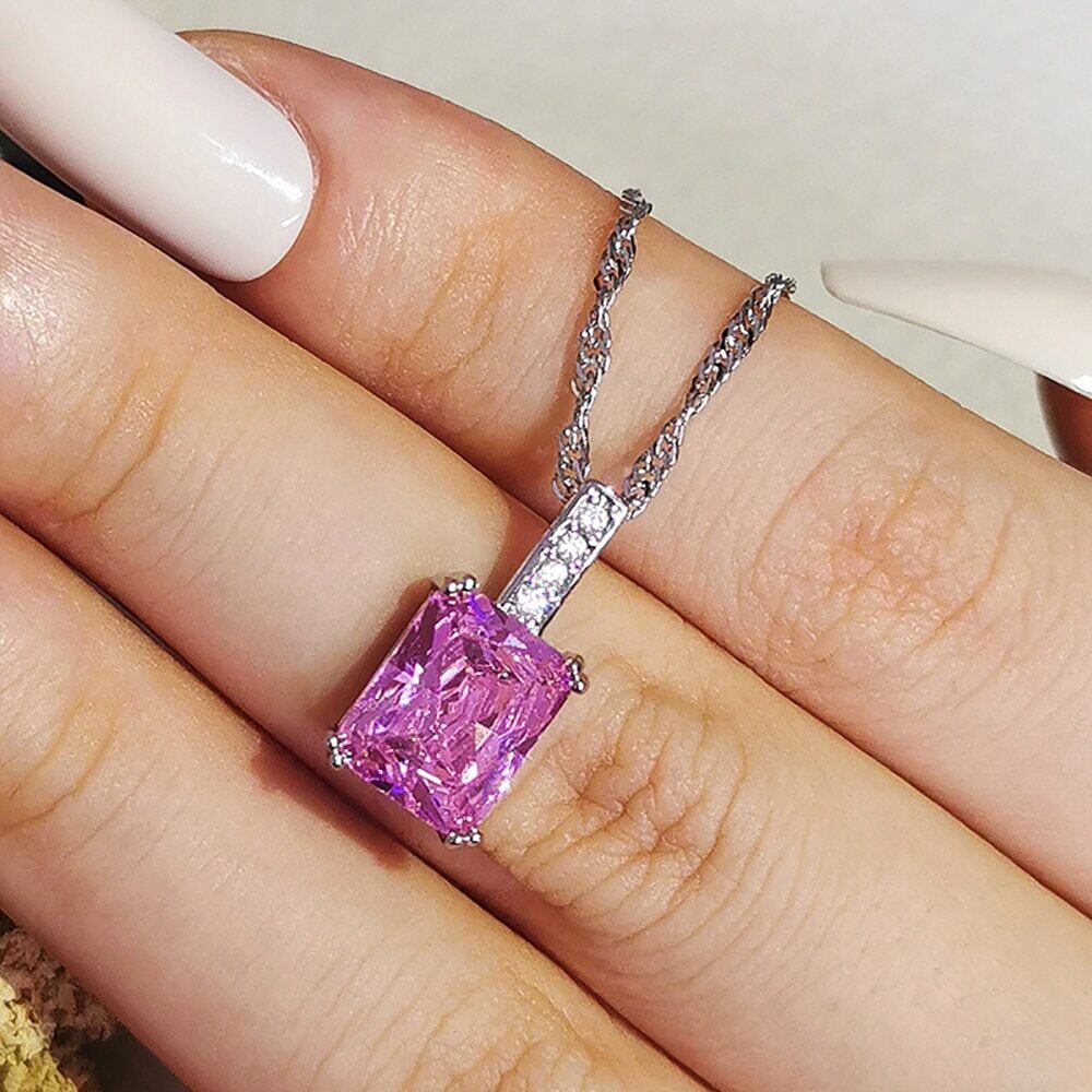 送料無料 セットあたり2個トレンディな長方形ピンクシルバーカラージュエリーセットウェディングイヤリングペンダント女性インドパーティーギフトJ7225 銀 アクセサリー AE00116675304423674