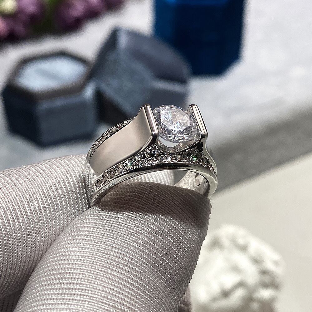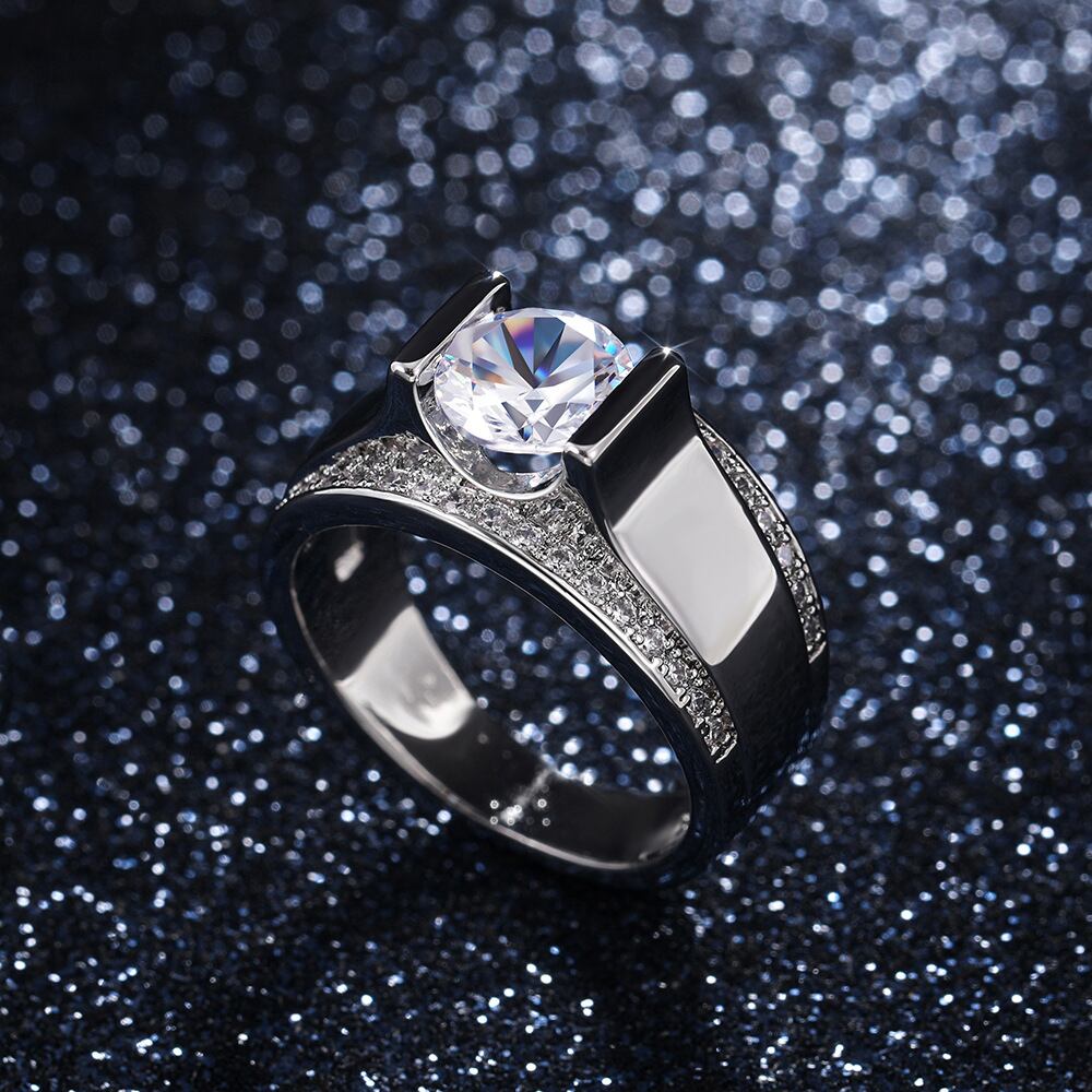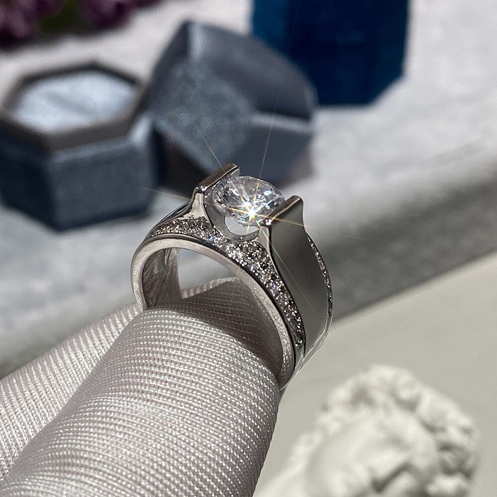 送料無料 2022ラグジュアリーハローシルバーカラー送料無料メンズリングアニバーサリーギフトジュエリーR6162 指輪 銀 アクセサリー AE00116663559340478