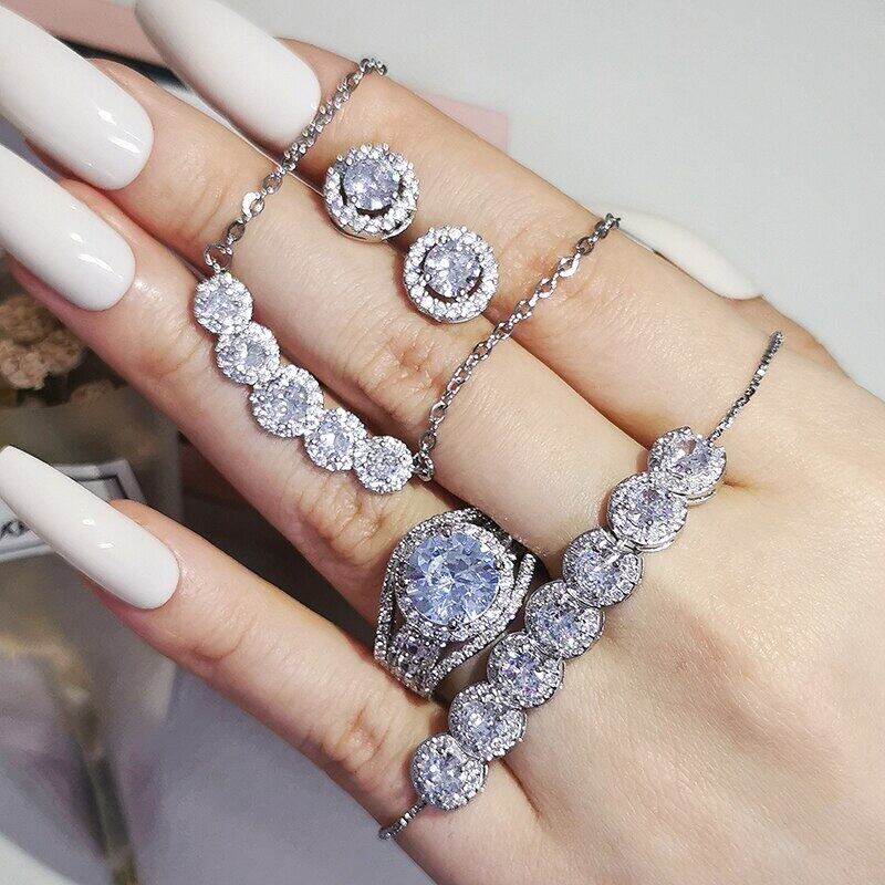 送料無料 4ピースパックバレンタインデー本物のシルバーカラーの花嫁ジュエリー婚約結婚式ブライダルラブ花嫁リングアフリカンJ6973 指輪 銀 アクセサリー AE00116699089409745