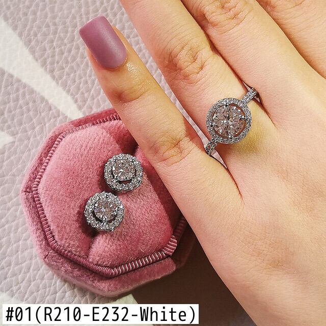 送料無料 2ピースパックシルバーカラー花嫁ジュエリーセットハロー婚約指輪ラウンドスタッドピアスウェディングJ416 イヤリング リング 銀 アクセサリー AE00116651599471852