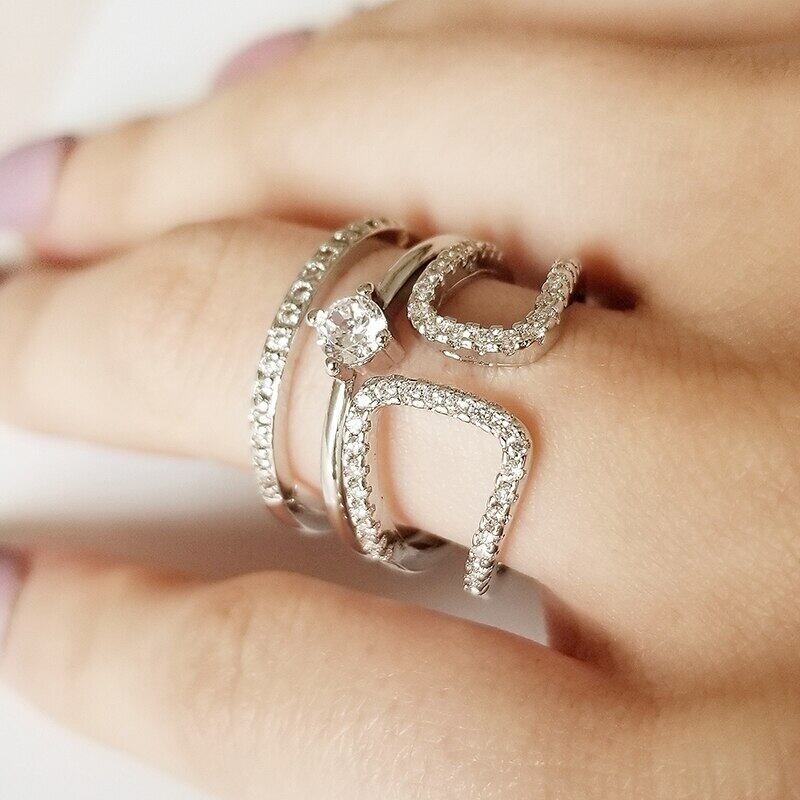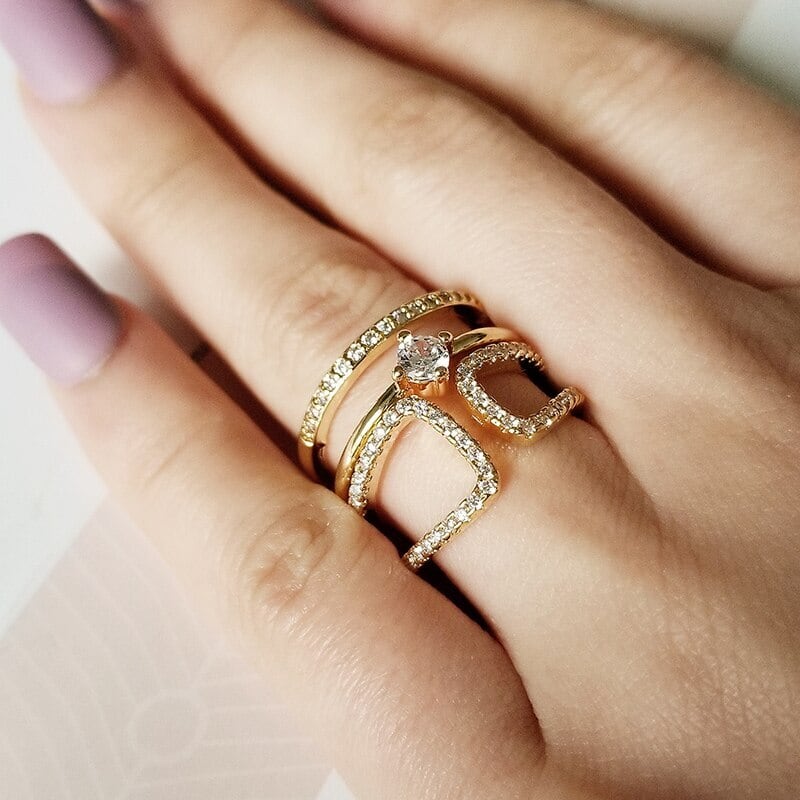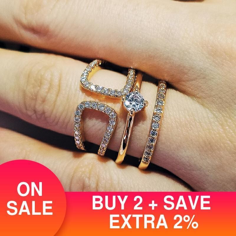 送料無料 2022ゴールドシルバーカラー3ピーススタックスタックウェディングエンゲージリングセットウィメンズバンドR5681 指輪 銀 アクセサリー AE00116657026896022