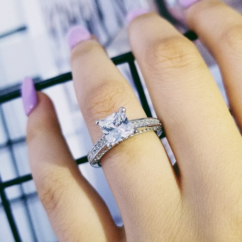 送料無料 シルバーカラーのウェディングエンゲージリングカットホットジュエリーパーソナライズドR645 指輪 銀 アクセサリー AE00116694670971754