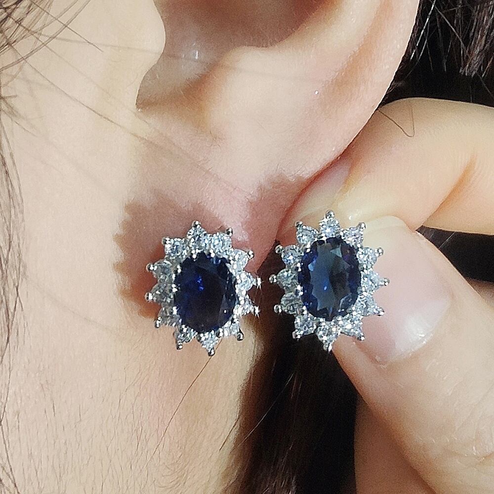 送料無料 2022ラグジュアリーブルーカラーヒマワリシルバーカラー韓国ドバイ女性レディアニバーサリーギフトジュエリークリスマスE5519 フラワーデザイン 銀 アクセサリー AE0011664939292776