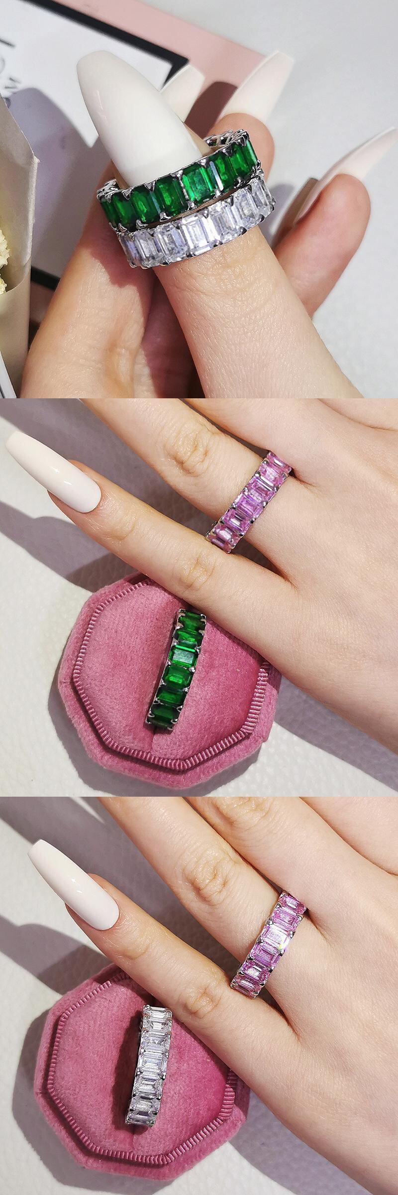 送料無料 セットあたり2個高級パックピンクグリーンシルバーカラー美的結婚指輪エタニティリング女性ギフトフィンガーロットジュエリーR4619 銀 アクセサリー AE00116616737177321