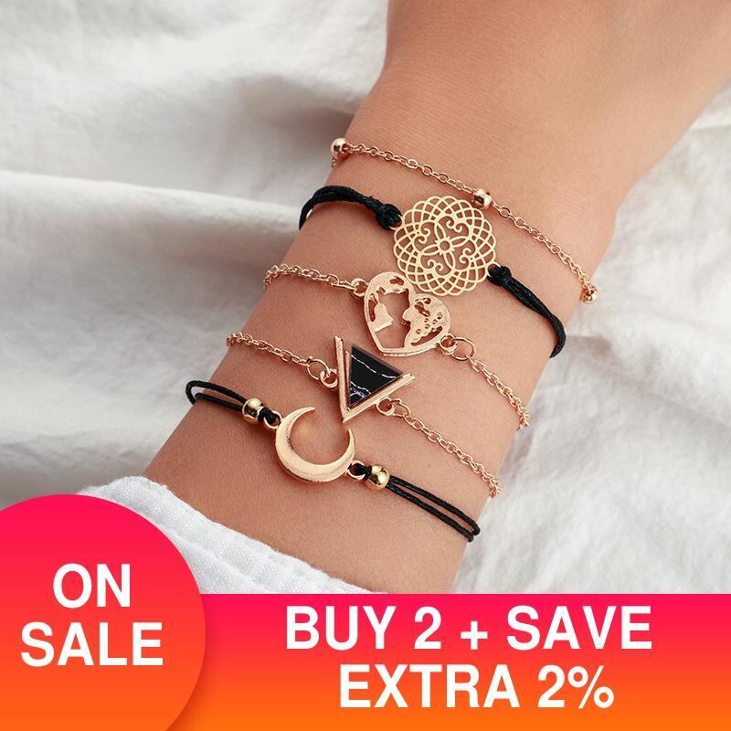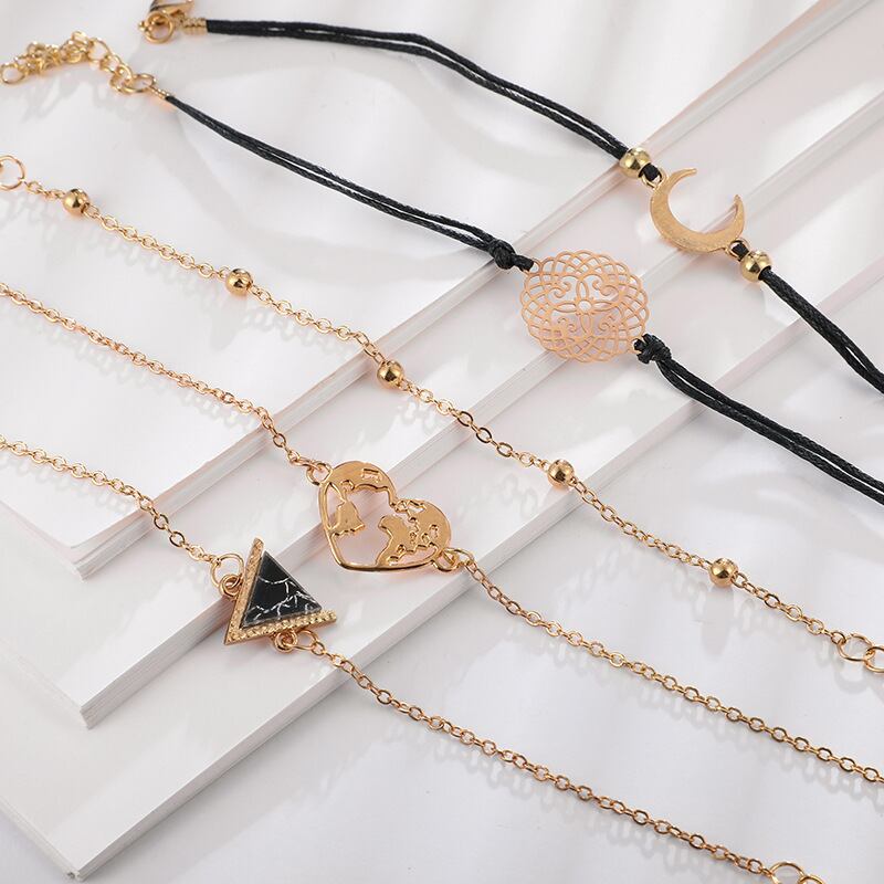 送料無料 2022ゴールドカラーボヘミアンウィンドホロウホロウピースラブムーンアロイブレスレット5PCSウィメンズパーティーギフトジュエリーバルクセルS5744 アクセサリー AE00116648833729406