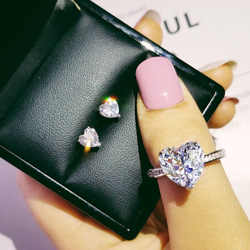 送料無料 2ピースパックシルバーカラー花嫁ジュエリーセットハロー婚約指輪ラウンドスタッドピアスウェディングJ4921 イヤリング リング 銀 アクセサリー AE00116684311434596