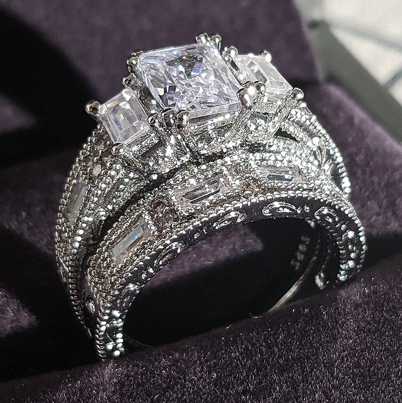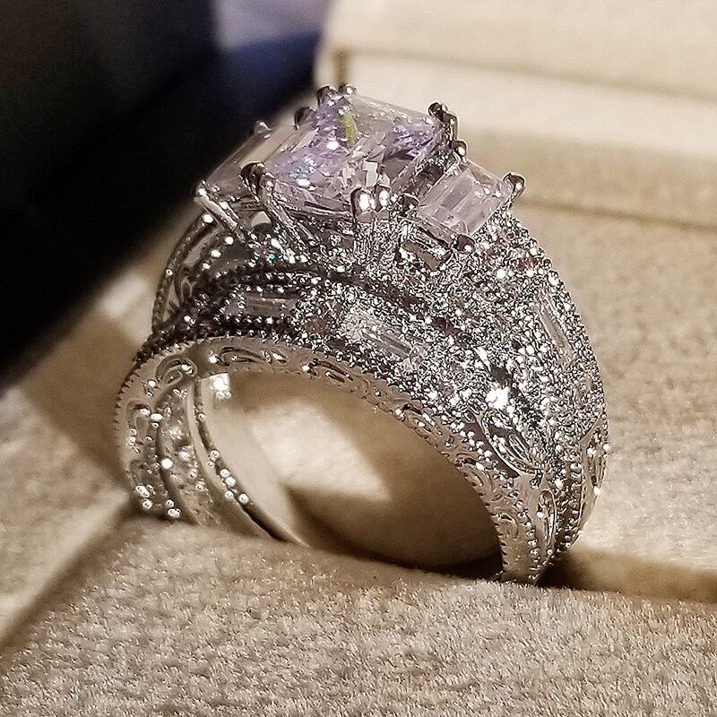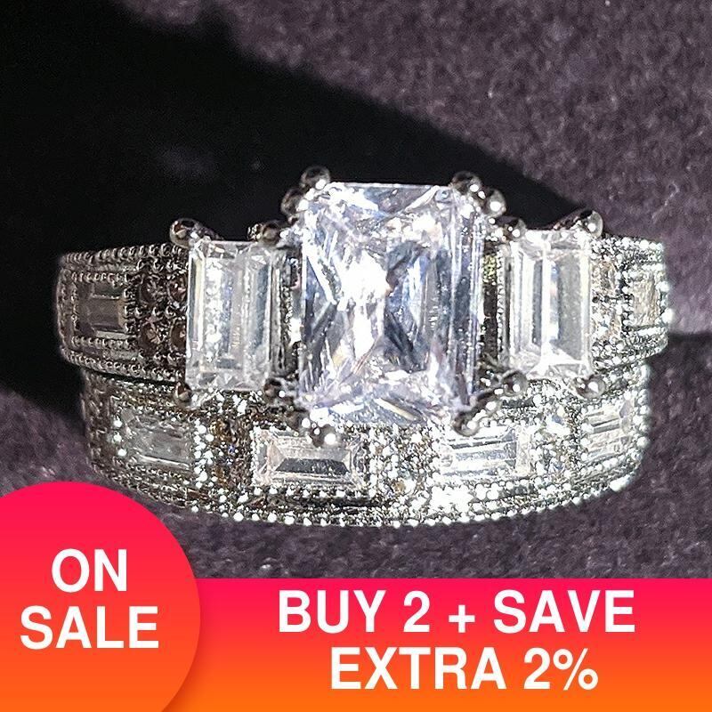送料無料 2020年の新しい豪華なラウンドシルバーカラーの花嫁の結婚指輪セットの女性の女性の記念日ジュエリーのバルク販売ブラックフライデーR5833 リング 銀 アクセサリー AE00116685586619197