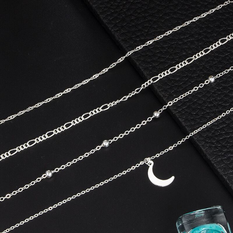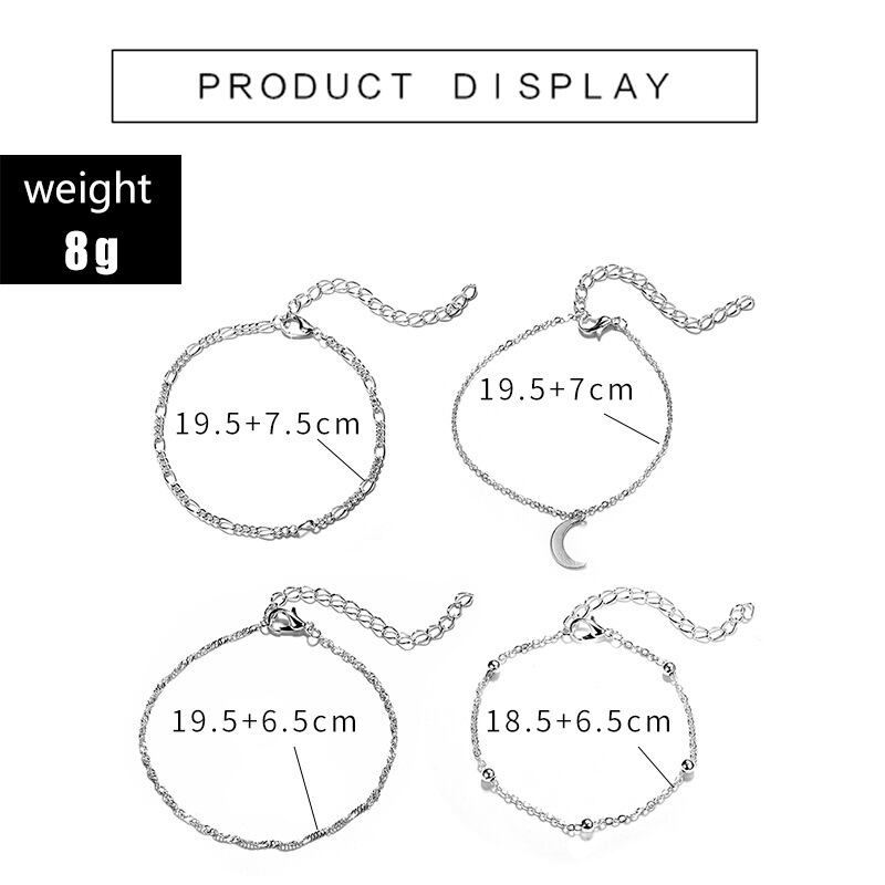 送料無料 2022トレンディなシルバーカラームーンチェーン4個アンクレットガールラバーズラブパーティーギフトジュエリーMoonso5736 銀 アクセサリー AE00116619894512843