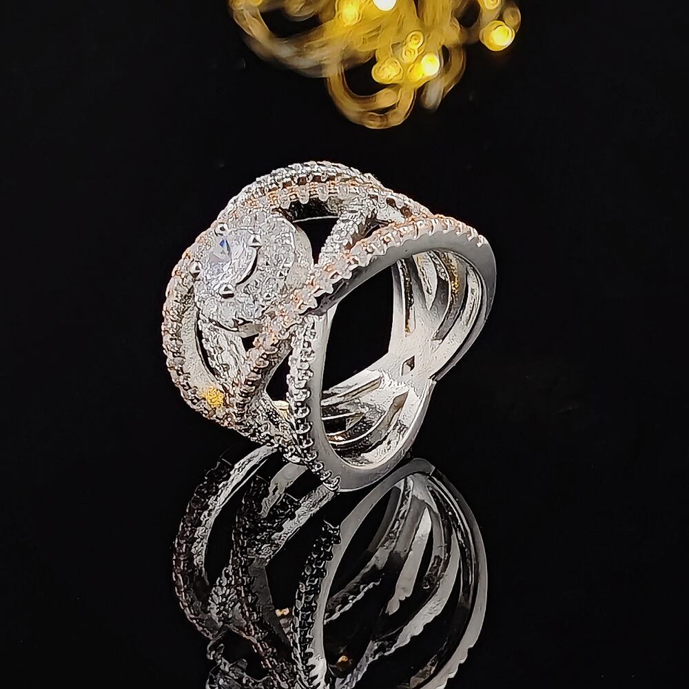 送料無料 2ピースパックシルバーカラー花嫁ジュエリーセットハロー婚約指輪ラウンドスタッドピアスウェディングギフトパーティーJ5569 イヤリング リング 銀 アクセサリー AE00116614426180268