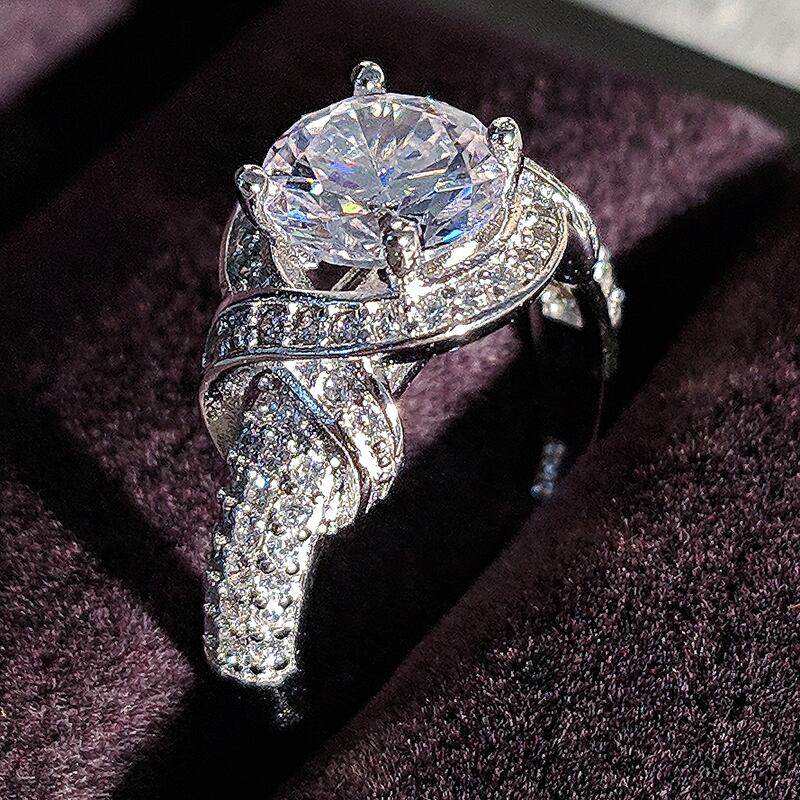 送料無料 2022シルバーカラーデザイナーHALOエンゲージメント結婚指輪ラグジュアリークリックフィンガーブライダルレディースジュエリーR4320C リング 銀 アクセサリー AE00116645901139126