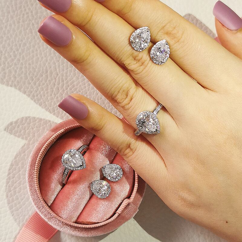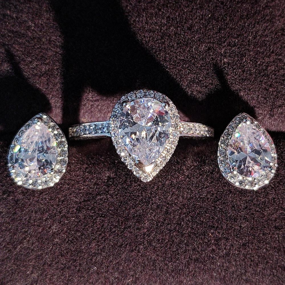送料無料 2本パック本物のシルバーカラー花嫁梨ジルコンジュエリーセット婚約指輪スタッドピアスウェディングクリスマスJ1473 イヤリング リング 銀 アクセサリー AE00116660256865996