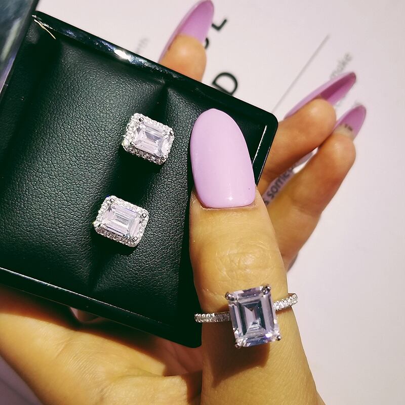 送料無料 2ピースパックシルバーカラー花嫁ジュエリーセットハロー婚約指輪ラウンドスタッドピアスウェディングクリスマスパーティーJ4744 イヤリング リング 銀 アクセサリー AE00116658256898388