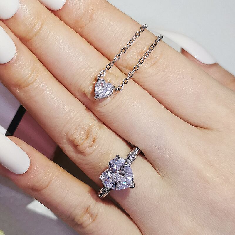 送料無料 2ピースパックシルバーカラー花嫁ジュエリーセットプロミスリングスタッドピアスペンダントネックレスパーティーギフト女性J6236 レース イヤリング 指輪 銀 アクセサリー AE00116629740331837