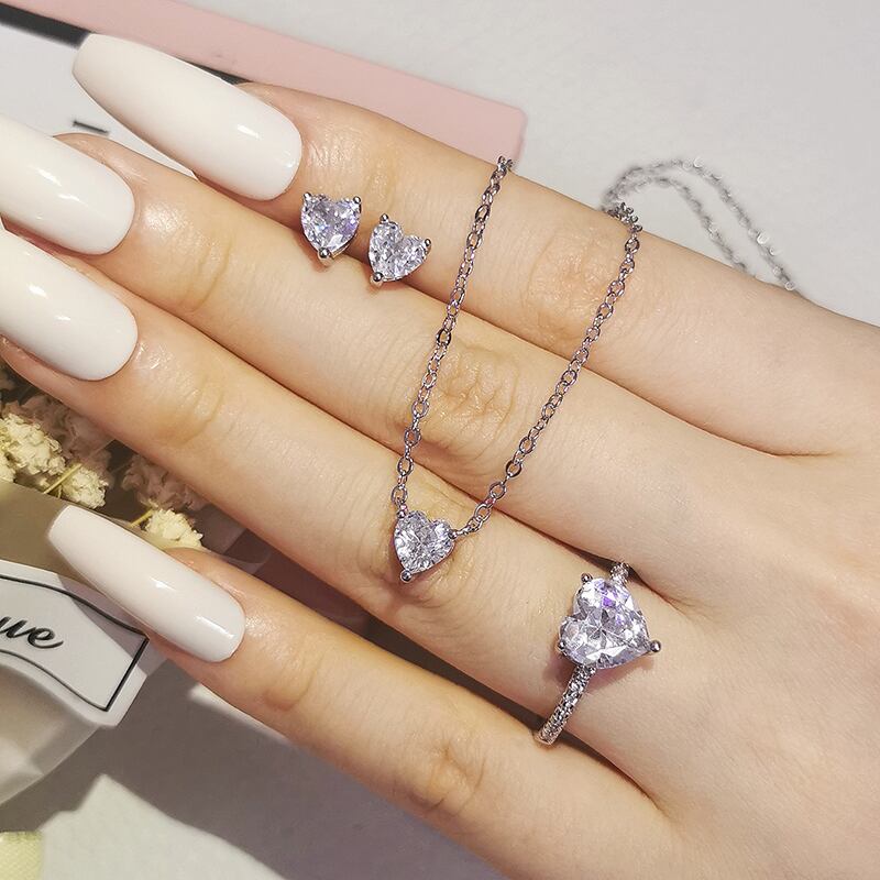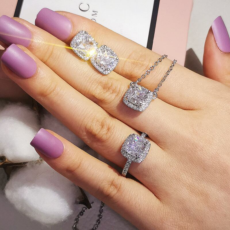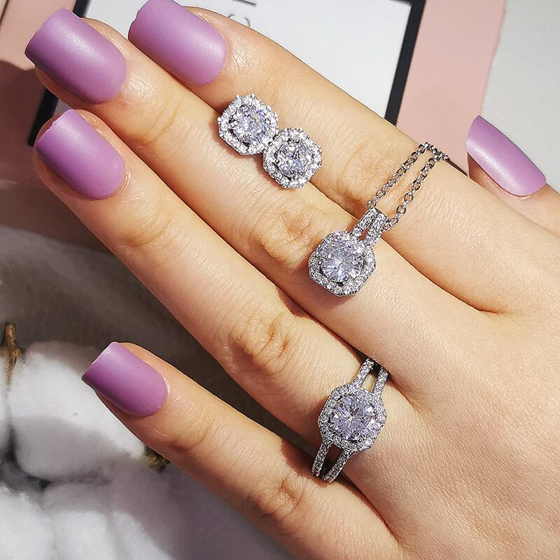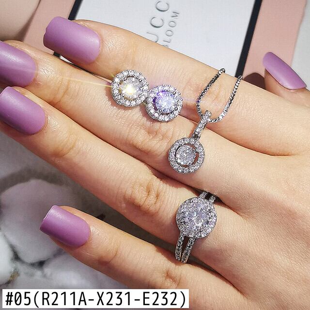 送料無料 2ピースパックドバイシルバーカラージュエリーセット婚約指輪ネックレスペンダントウェディングブライダルジュエリー女性イヤリングJ1104 レース 銀 アクセサリー AE00116664734025145