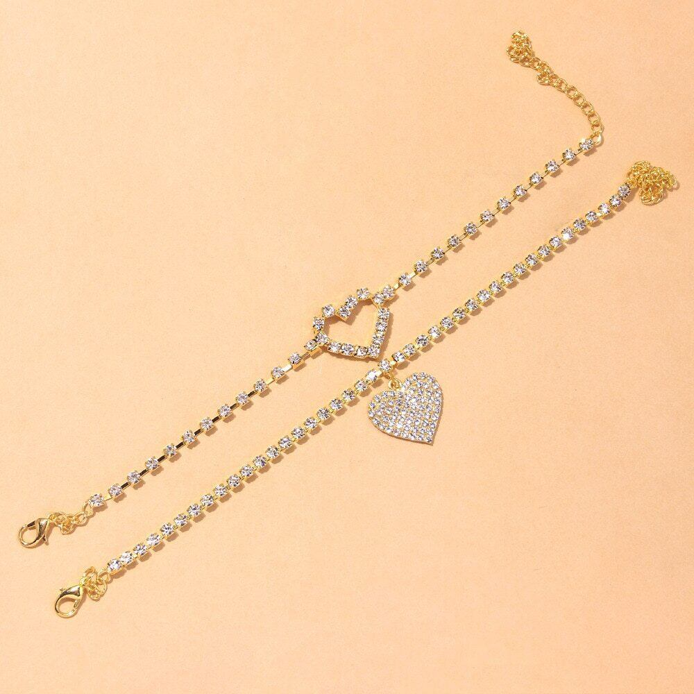 送料無料 2022年トレンディなゴールドシルバーカラーハートアンクレットブレスレット女性パーティーギフトジュエリーバルクビーチ夏7157 サマー 夏物 銀 アクセサリー AE00116693699900152