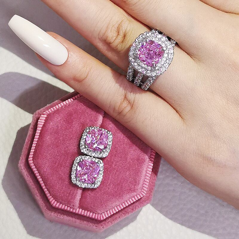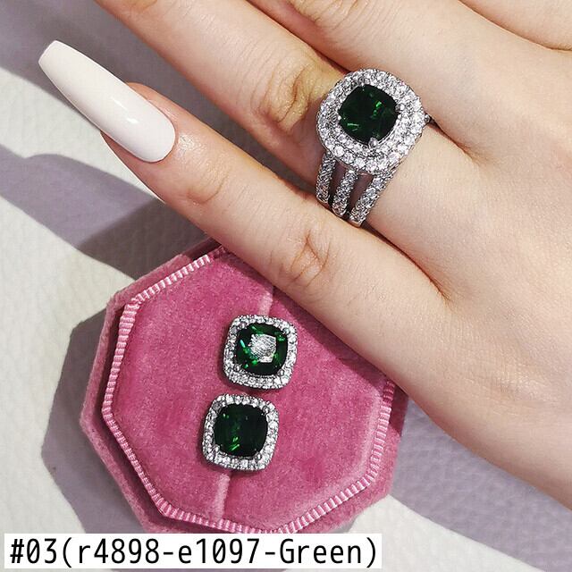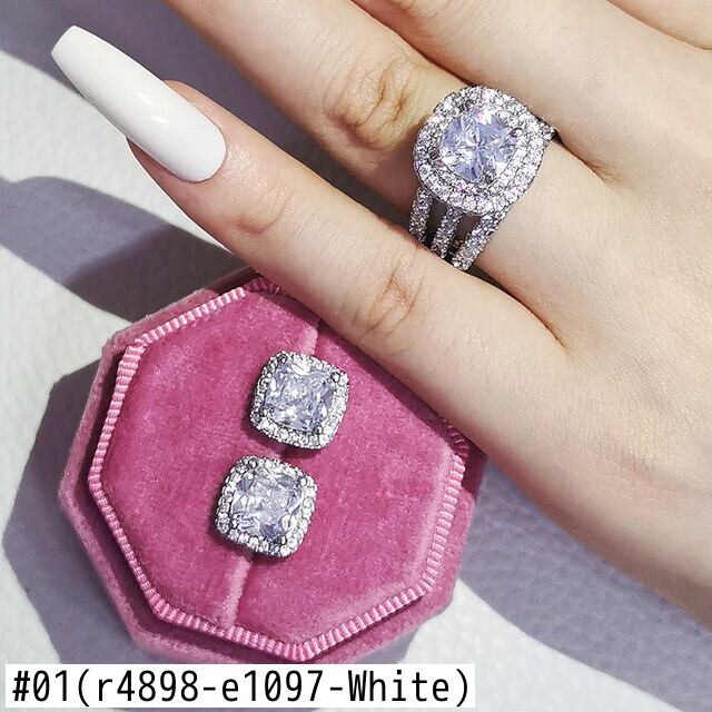 送料無料 2022シルバーカラー花嫁ジュエリーセットクッション婚約指輪スタッドピアスウェディングパーティーギフトJ5568 イヤリング リング 銀 アクセサリー AE00116611433577532
