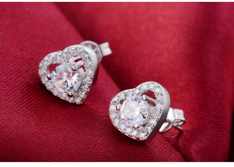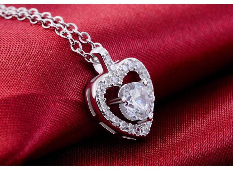 送料無料 2ピースパックシルバーカラー花嫁ジュエリーセットハート型スタッドピアスネックレスペンダントプロミスファッションクリスマス女性J1472 レース イヤリング 銀 アクセサリー AE00116658462419446