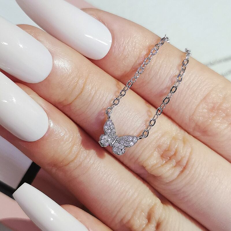 送料無料 2022年トレンディなバタフライネックレスシルバーカラーガールクリスマスギフトジュエリアイテムX6228 レース 銀 アクセサリー AE00116650960058255