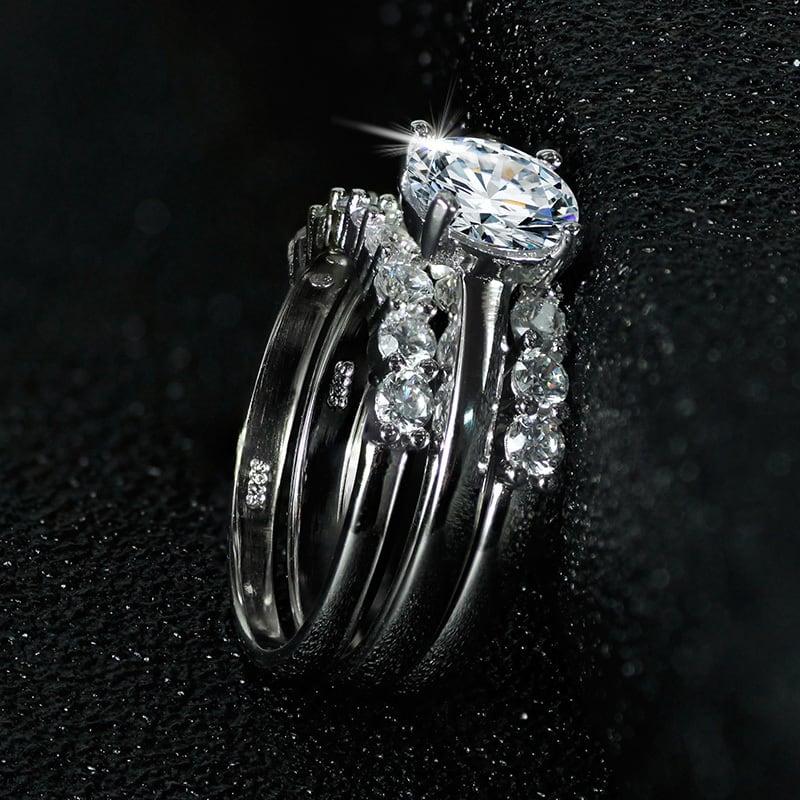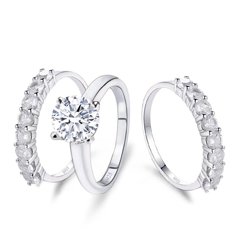 送料無料 2022シルバーカラーの花嫁3ピース結婚式の婚約指輪セット女性の指バンドパーソナライズされたR4324 リング 銀 アクセサリー AE00116660942121765