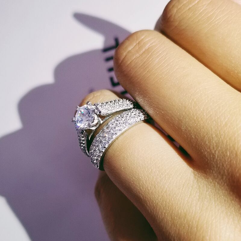 送料無料 Moonsoの新しいクッションカットシルバーカラーの花嫁の結婚指輪セットの女性の花嫁の婚約ジュエリーバンド永遠R4837 リング 銀 アクセサリー AE00116698338188867