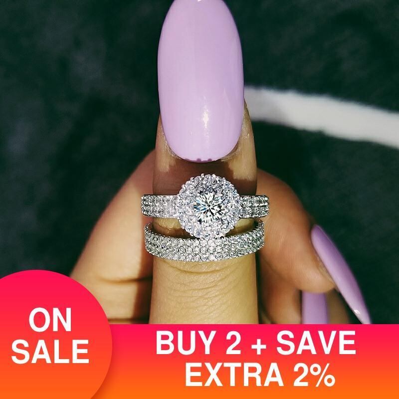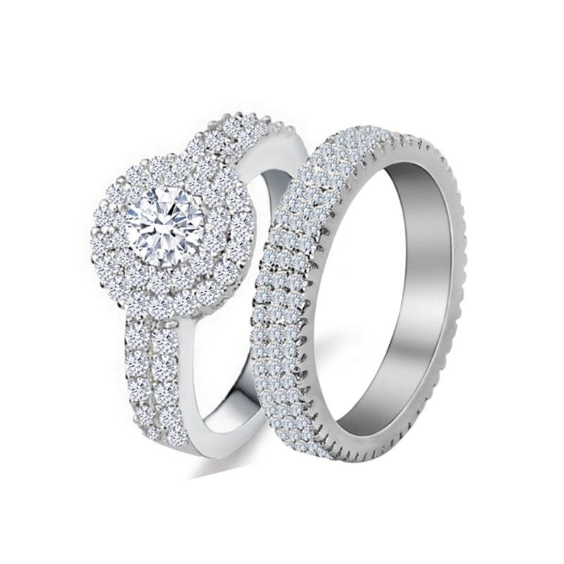 送料無料 シルバーカラーの花嫁のウェディングリングセット3in1バンドリング女性の婚約ブライダルファッションジュエリーフィンガーブラックフライデーR4629 指輪 銀 アクセサリー AE00116633345931179