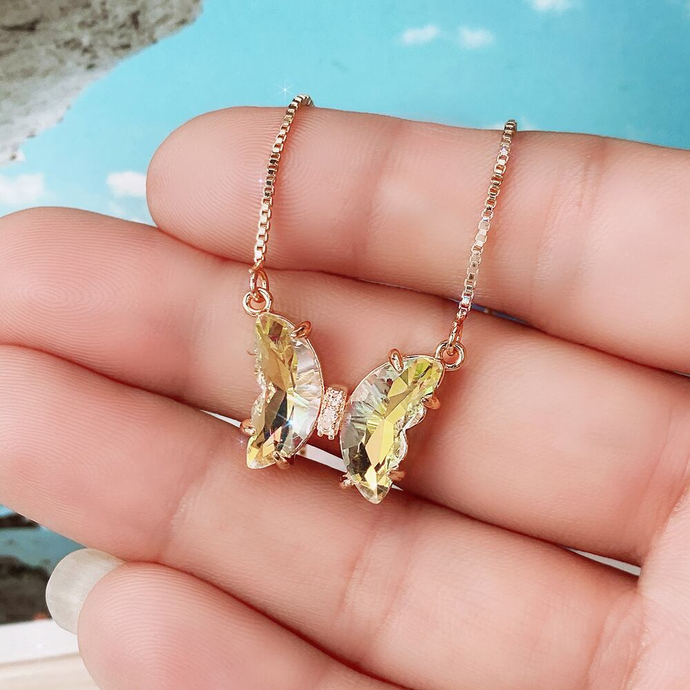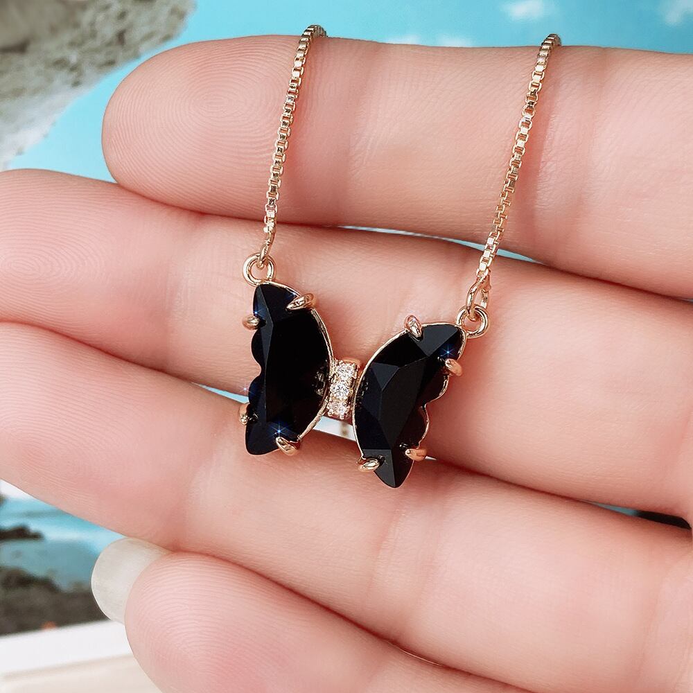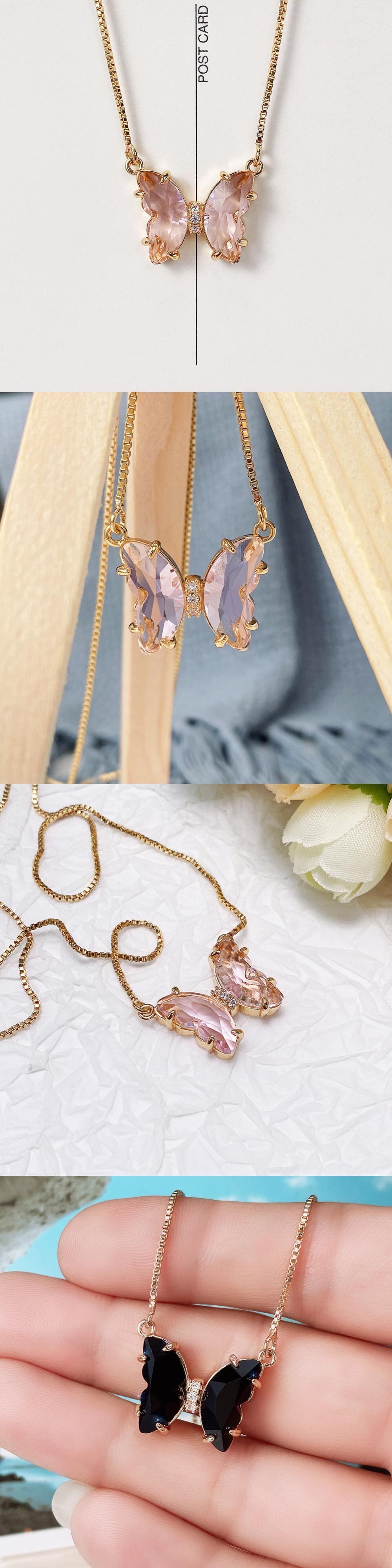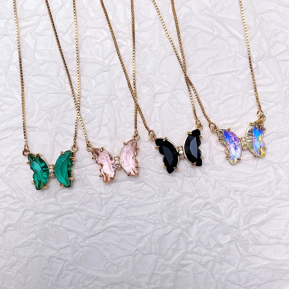 送料無料 2022トレンディグリーンピンクイエローブラックカラーバタフライネックレス女性結婚記念日ギフトジュエリーX7542 レース アクセサリー AE00116624847556874