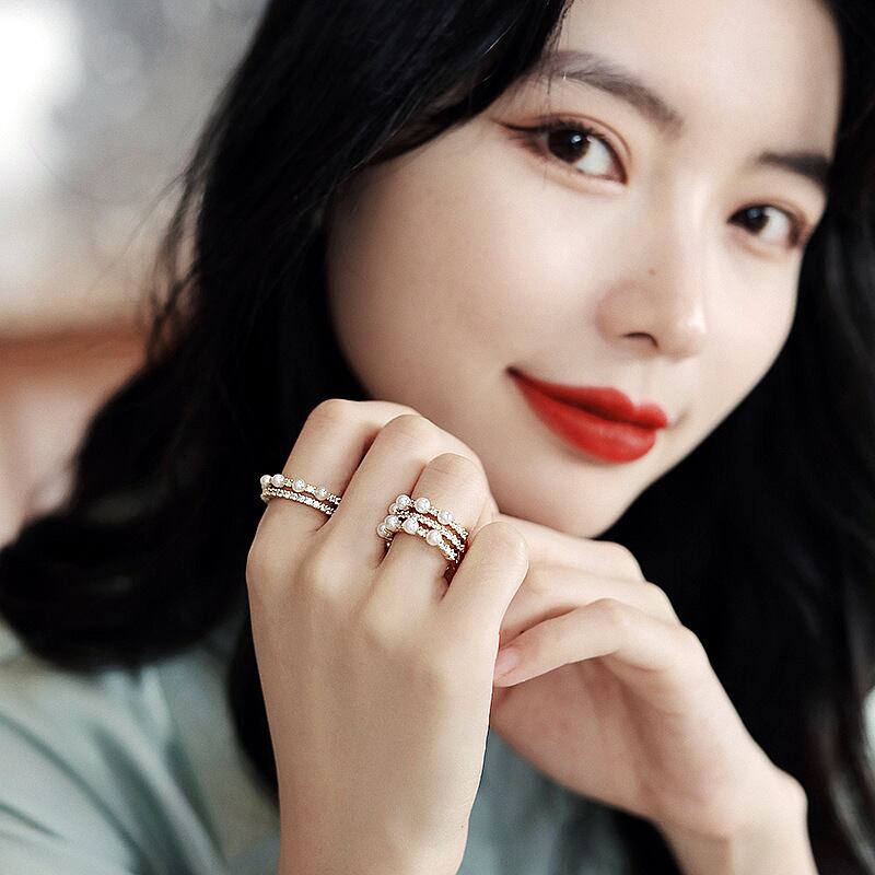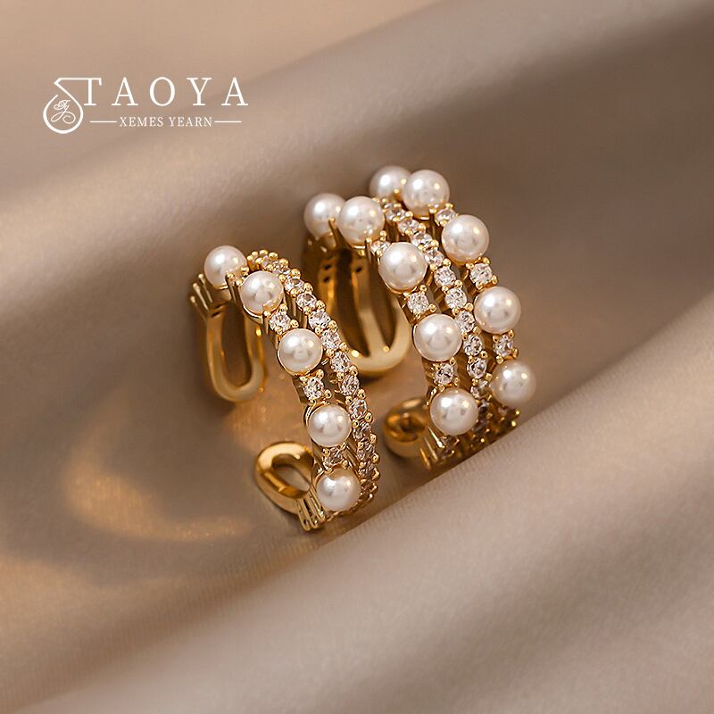 送料無料 2022ライトラグジュアリージルコンパールマルチレイヤーゴールドオープンリングジュエリー女性絶妙なアクセサリーパーティーガール 指輪 真珠 アクセサリー AE7653260232231237