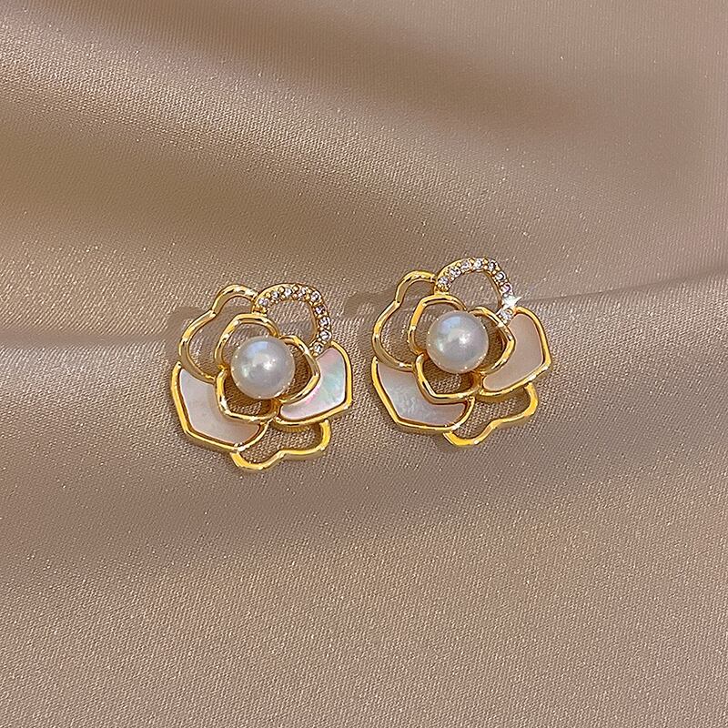送料無料 セミホローアウトゴールデンマグノリアパールシェルイヤリング2022ジュエリーパーティーガールズラグジュアリーアクセサリーレディース絶妙なギフト 真珠 指輪 アクセサリー AE7653291650303821