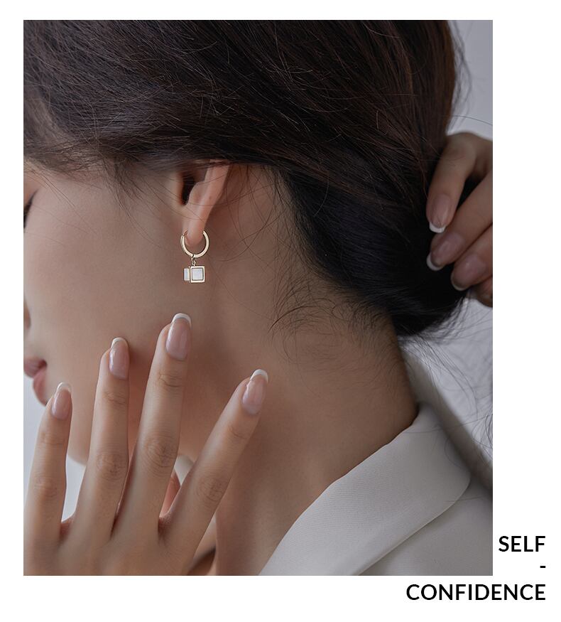 送料無料 2022幾何学的な三次元ホワイトスクエアペンダントゴールドイヤリングシンプルなアクセサリーパーティーウーマン絶妙なジュエリー 指輪 スクウェア アクセサリー AE7653269084918963