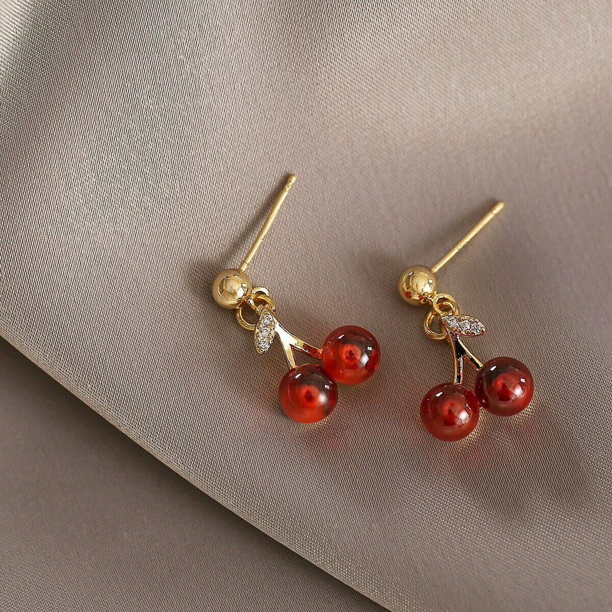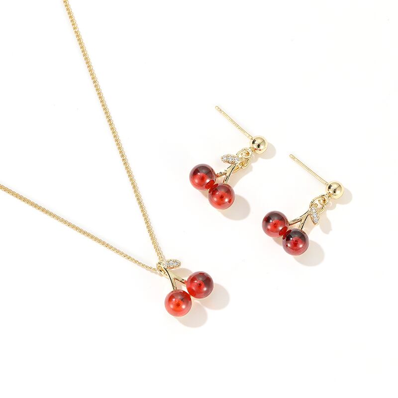 送料無料 2022スウィートワインレッドチェリー型ペンダントイヤリングスーツジュエリーパーティーセクシーネックレスアクセサリーレディース レース 大人ガーリー キュート カジュアル 指輪 アクセサリー AE7653247796709648